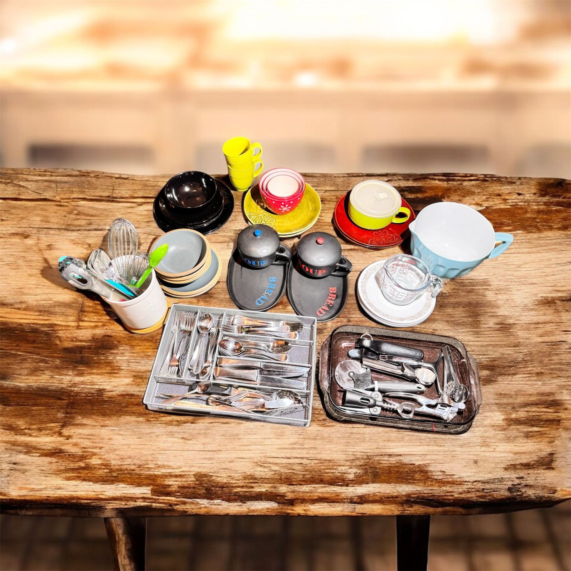 Various Plates, Bowls, Utensils, And Cookware