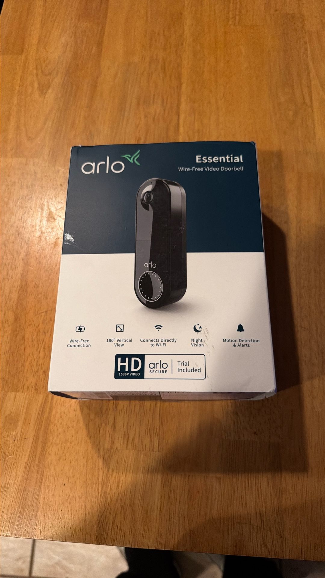 Arlo Essential Video Doorbell Wire-Free - HD Video, 180° View, Night Vision, 2 Way Audio, Direct to Wi-Fi No Hub Needed, Wire Free or Wired, Black - AVD2001B, 1 Count Never used! $45 obo (or better offer)