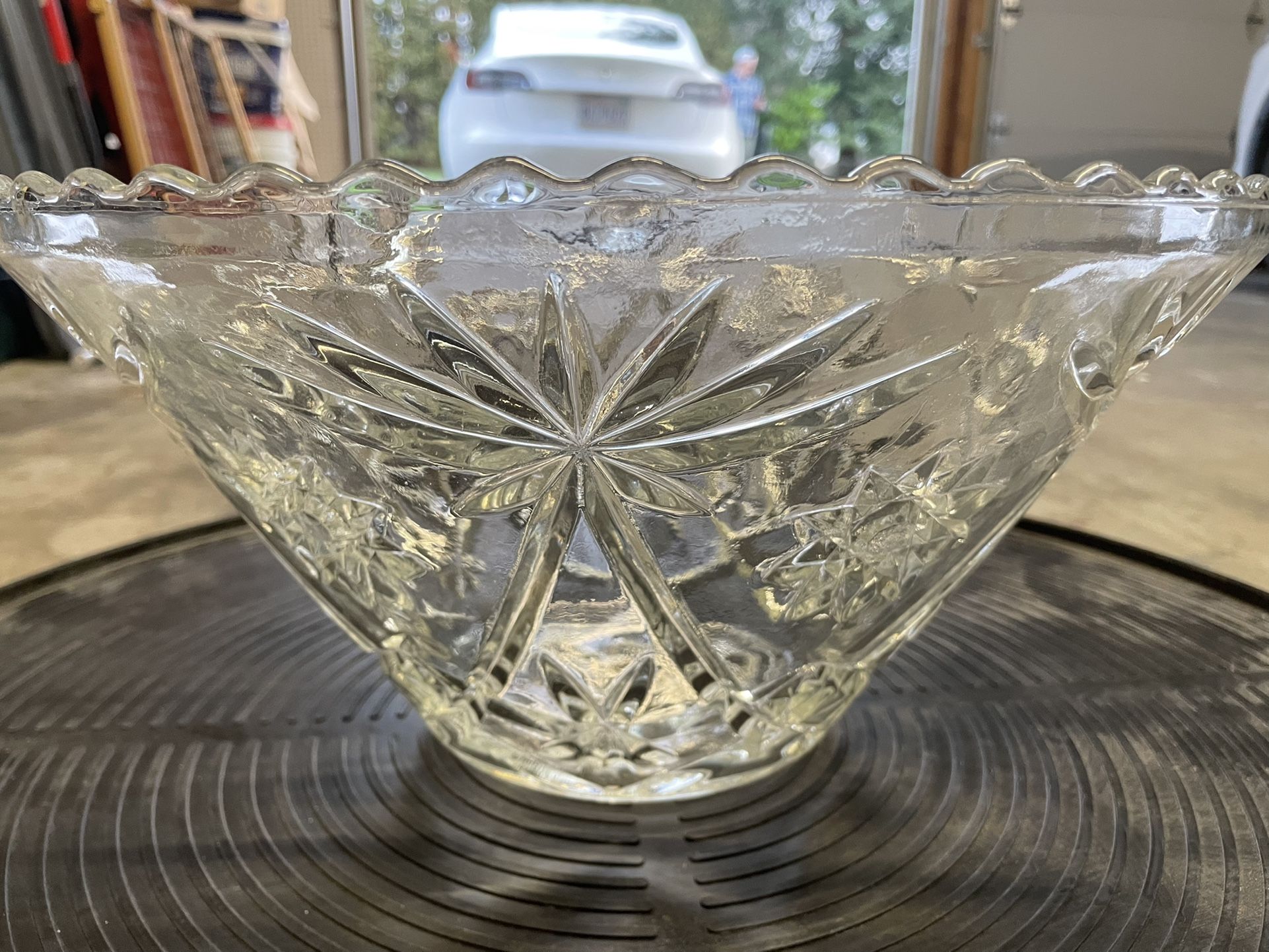 Anchor Hocking Prescut Clear punch bowl and 12 matching glasses. In great condition we just don’t have the room to store it.