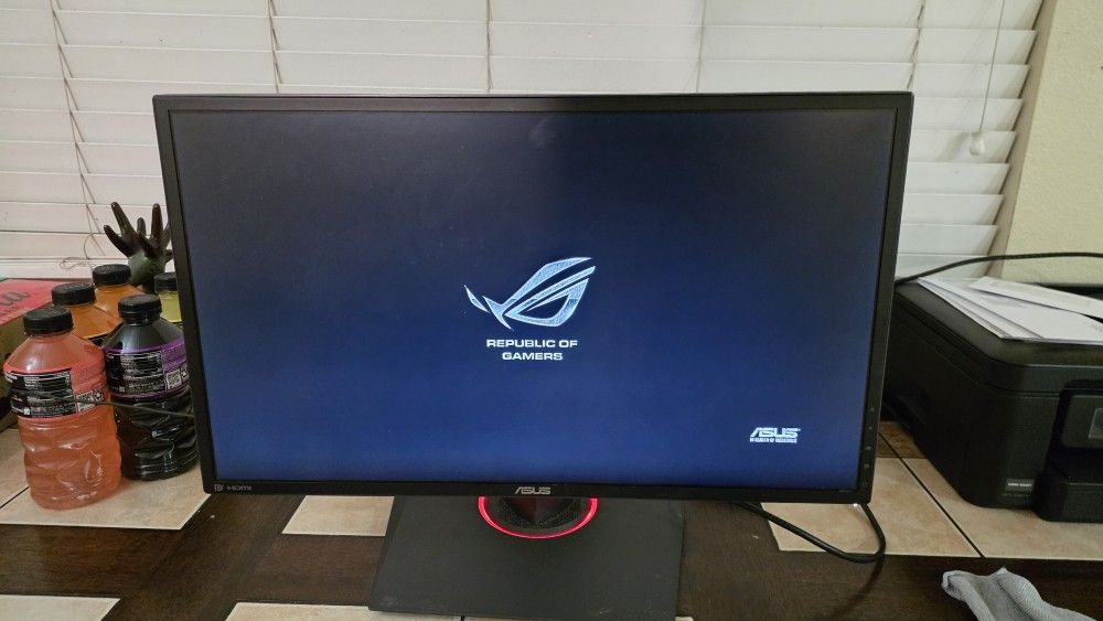 Gaming Monitor from asus rog 1080p good condition no dead pixels factory power supply and displayport cable included g sync and 180hz refresh rate had hdmi too feel free to hit me up with offers