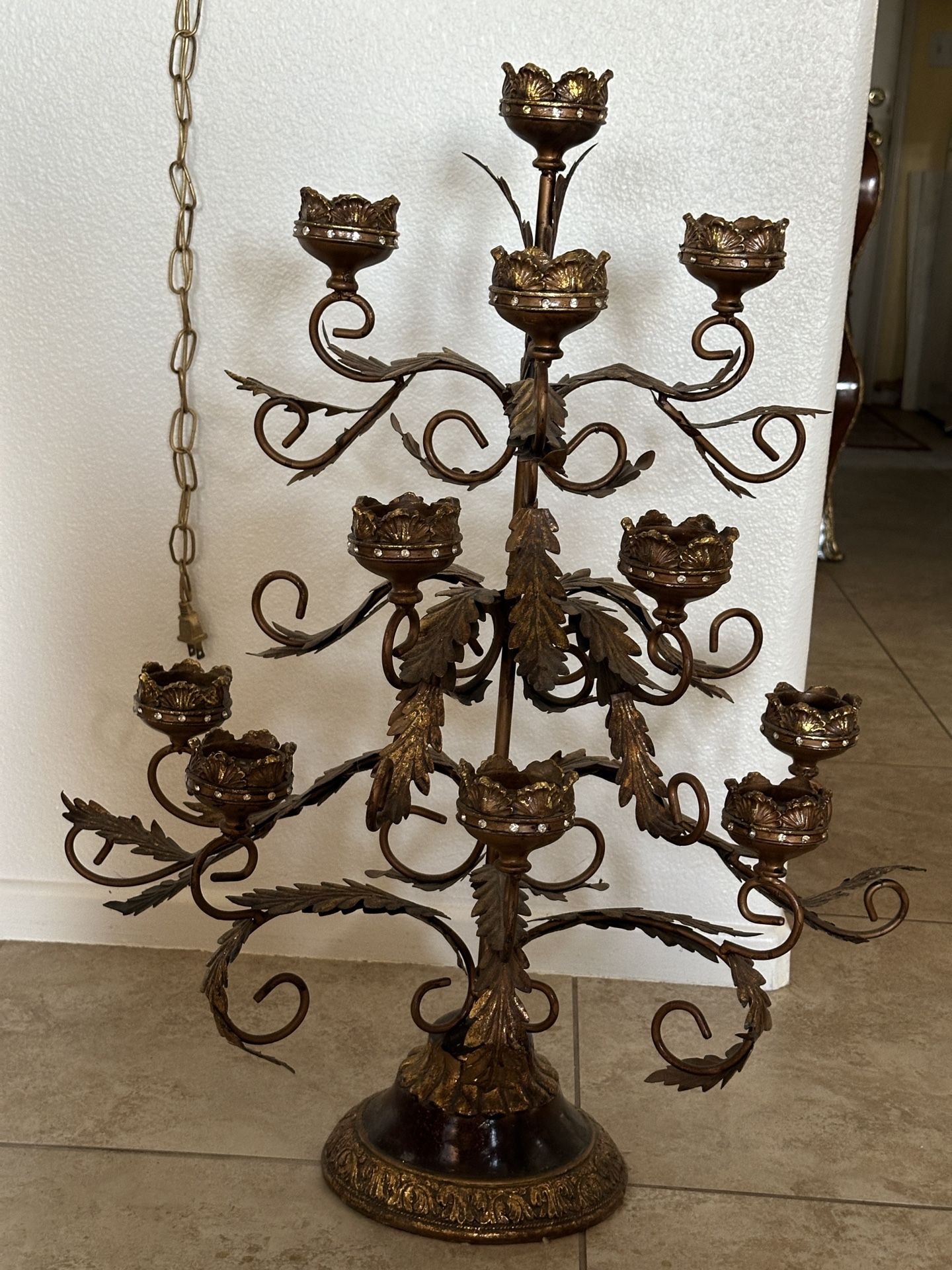 It’s very heavy branch design candle holder it’s so beautiful and works for all occasions through out the year. It’s 30” high by 25” wide