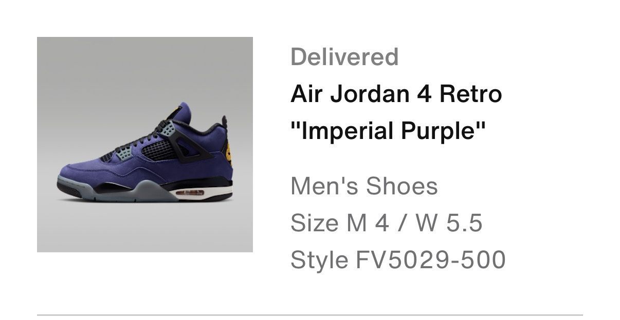 Brand New in Box SZ M 4 / W 5.5 Purple Kobe Lakers Authentic