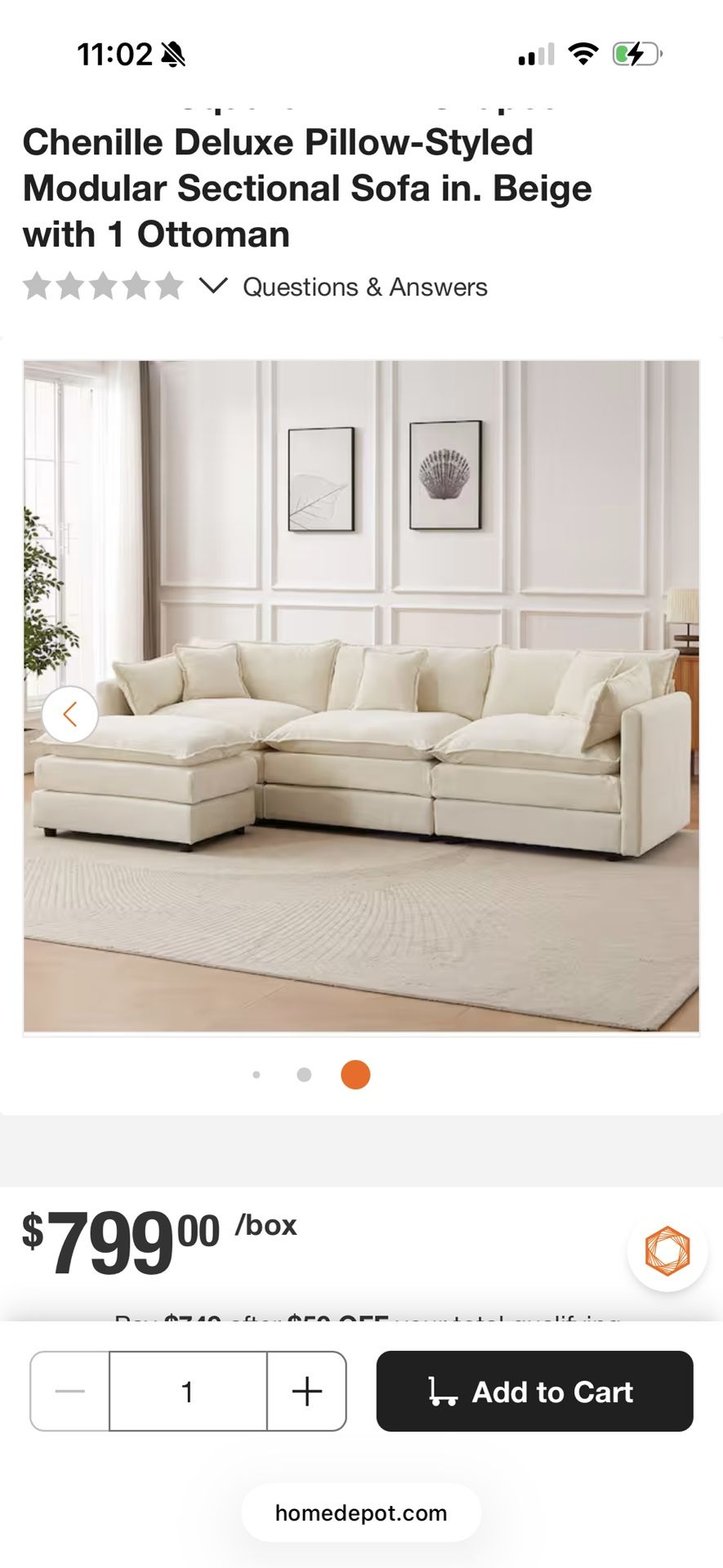 Brand new in box comes in 4 boxes L beige modular sectional with ottoman Can deliver for an additional fee GOJANE 112.2 IN. SQUARE ARM L-SHAPED CHENILLE DELUXE PILLOW-STYLED MODULAR SECTIONAL SOFA IN. BEIGE WITH 1-OTTOMAN