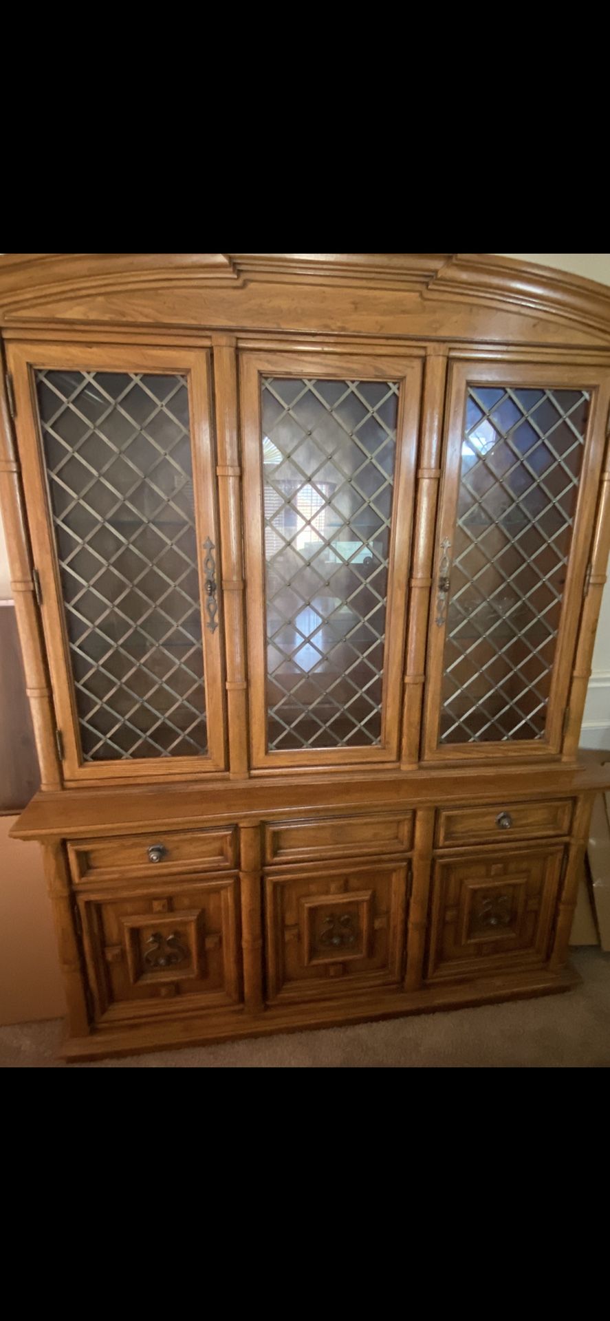 Dining room set hardwood sits 8 people with the China cabinet with lights inside