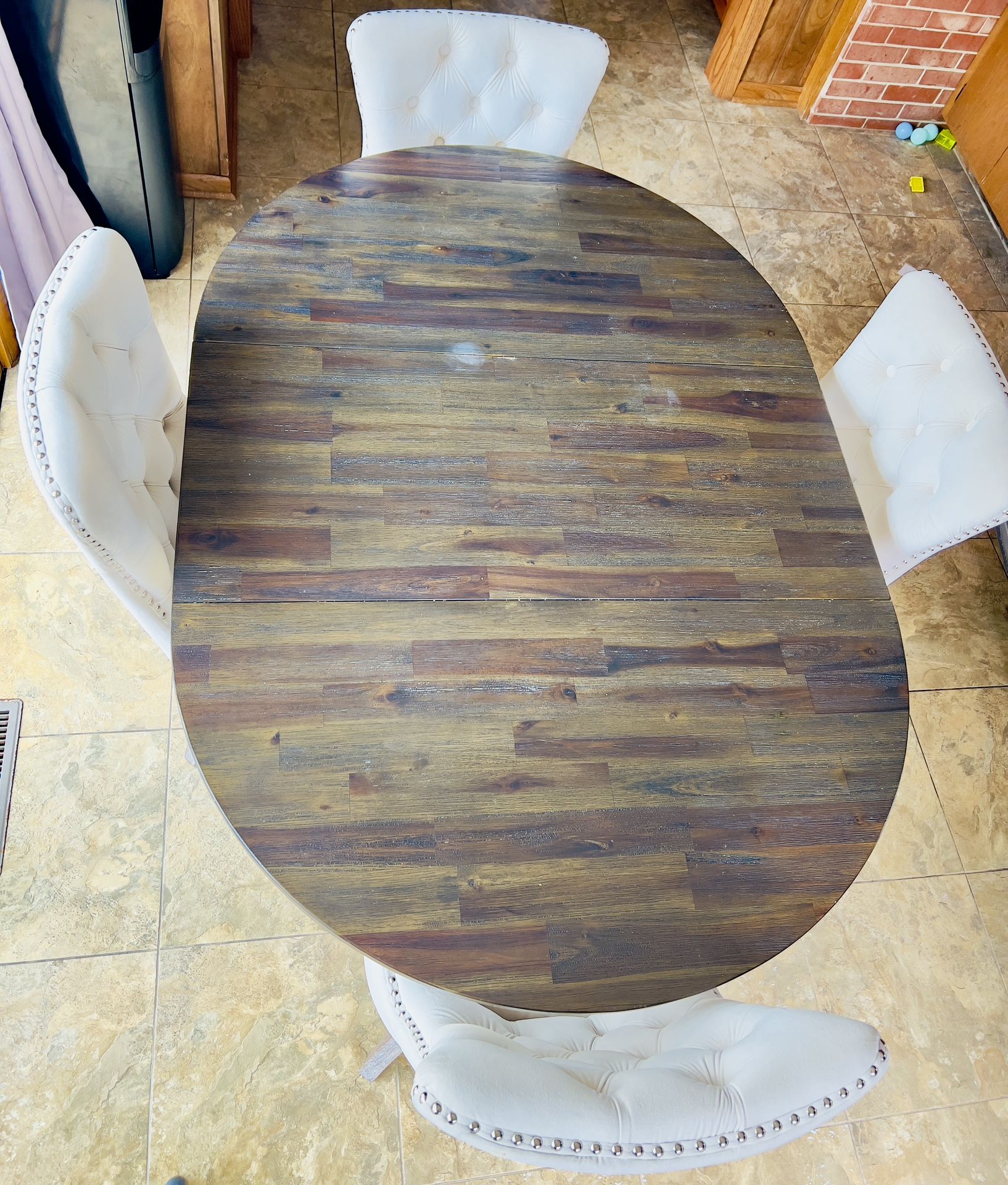 Solid wood, oval shape or round adjustable dining table