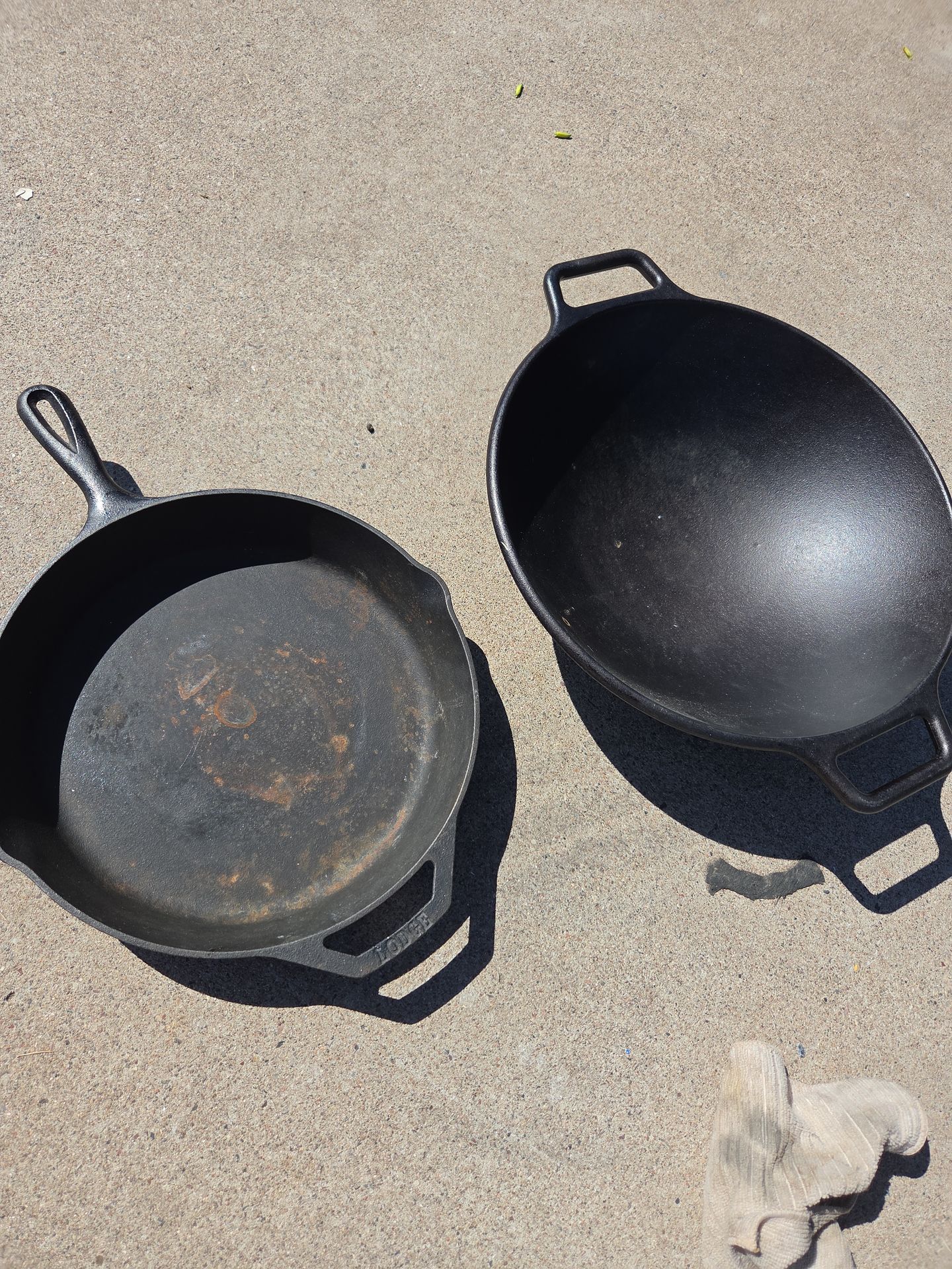 Two Lodge Cast Iron Pans. Made in the USA. The pan is lightly used, little cleaning and seasoning; she'll will be good as new! The wok is in like new condition! $50 or your best offer! Need gone ASAP!