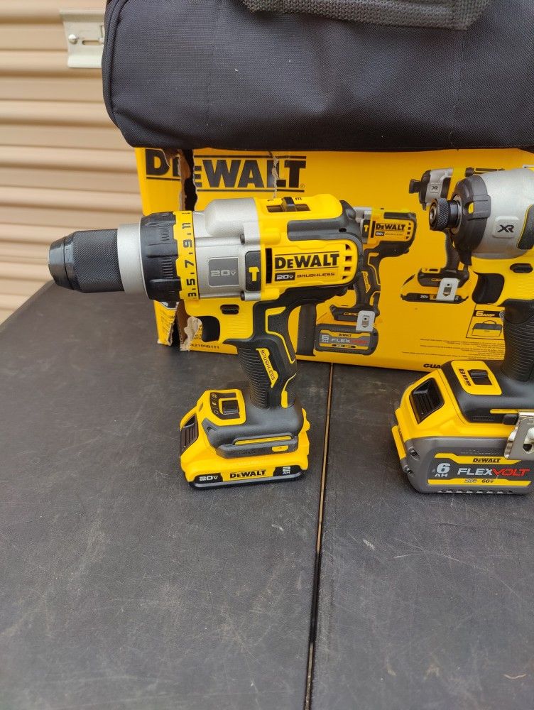 Flexvolt Set Includes 2 Speed Hammerdrill Brushless , 3 Speed Impact, 6.0 Flex Volt Battery, 2.0 Battery And Charger New Kit Kit Combo Dewalt Flexvolt Nuevo Taladro con Roto Martillo, 3 Velocidades Impacto, Batería 6.0 Flex Volt Y Una 2.0 Bateria y Cargador Nuevo