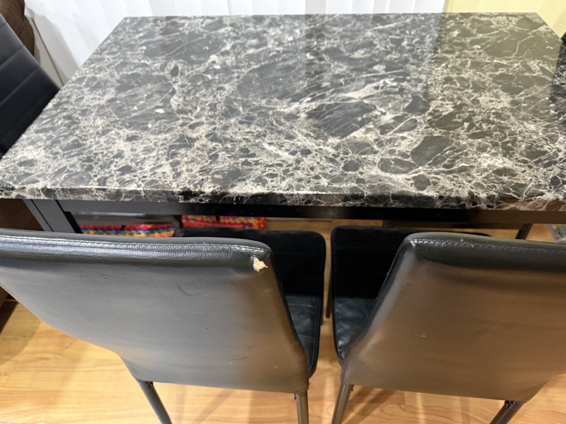 Breakfast table and chairs in good usable condition. Slight wear and tear through use. If interested please respond.