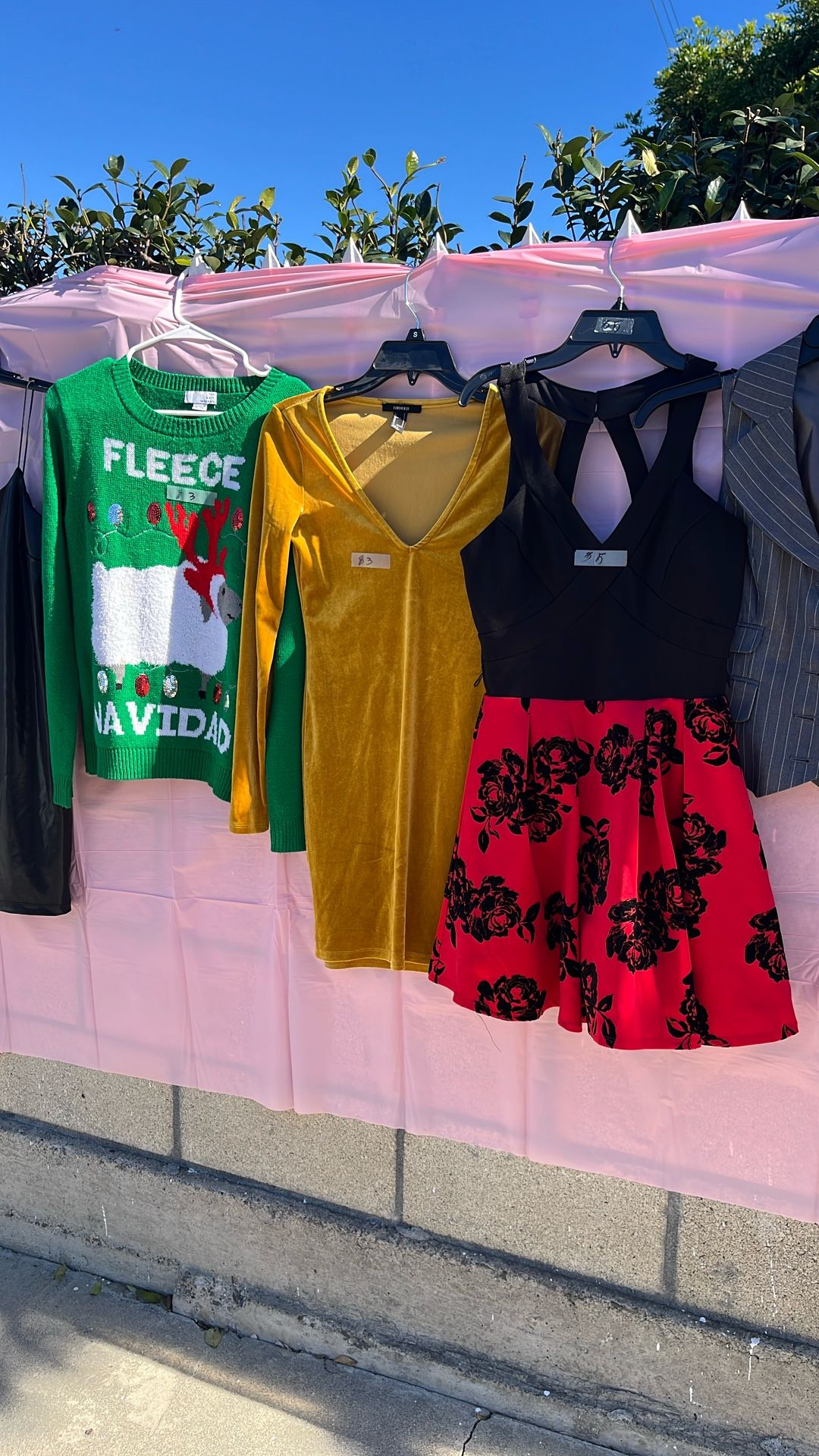 Dress for sale are good condition: yellow $3, red$5 and light green $5.