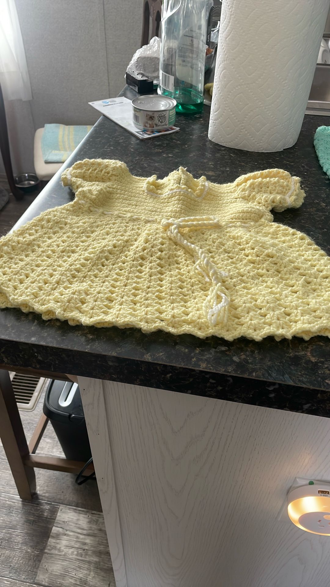 Used Washable wool Size new born-3 months Dress is yellow Sweater is light blue No stains Door/porch pickup Near Oceana NAS