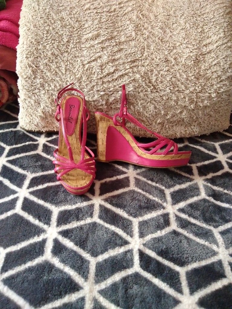 Women's shoes high heels wedge sandals Size 4.5-5 hard to find petite Pink Pre loved!!