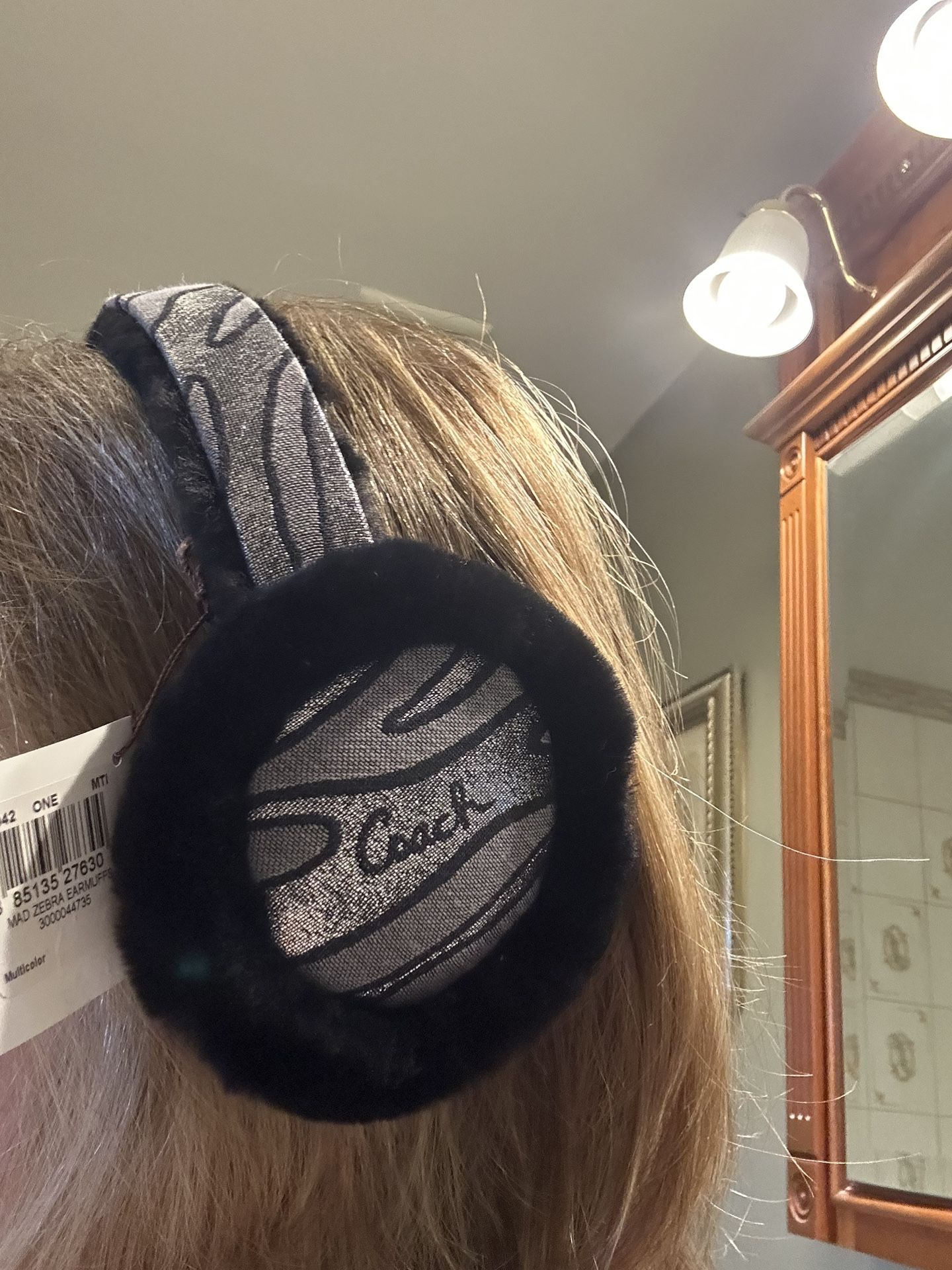 Genuine Coach Vintage Mad Zebra Earmuffs . 100% Real Lamb Shearling Dyed . Black ,Gray and glittery Silver accents . Coach logo intact . New Original tags attached . Never worn Excellent Original Condition . Beautiful and Unique ! Cash only Customer pickup . Great Designer Christmas Gift .