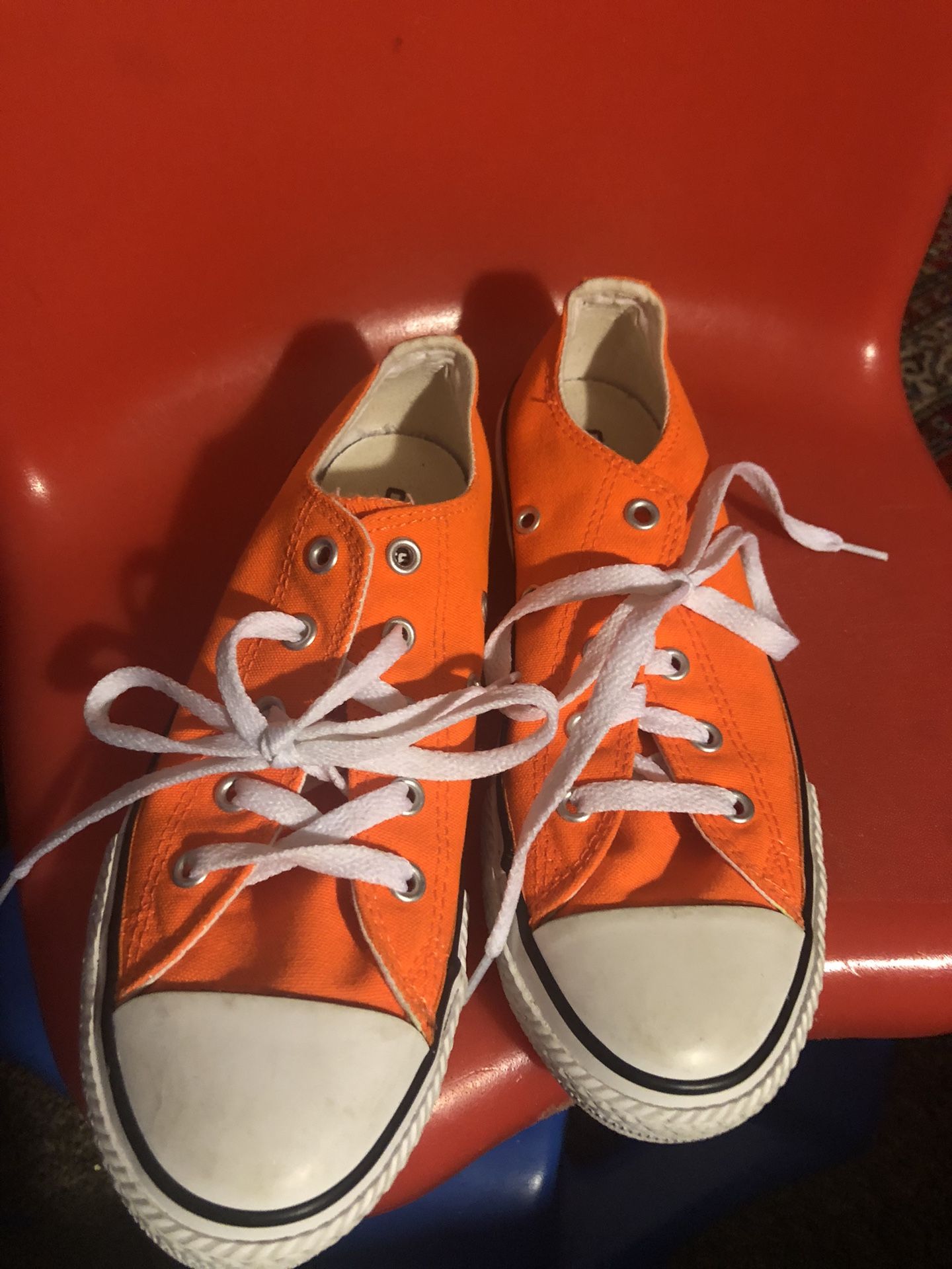 Perfect orange converse low tops. With white laces. Size 2. Get these today price drop!