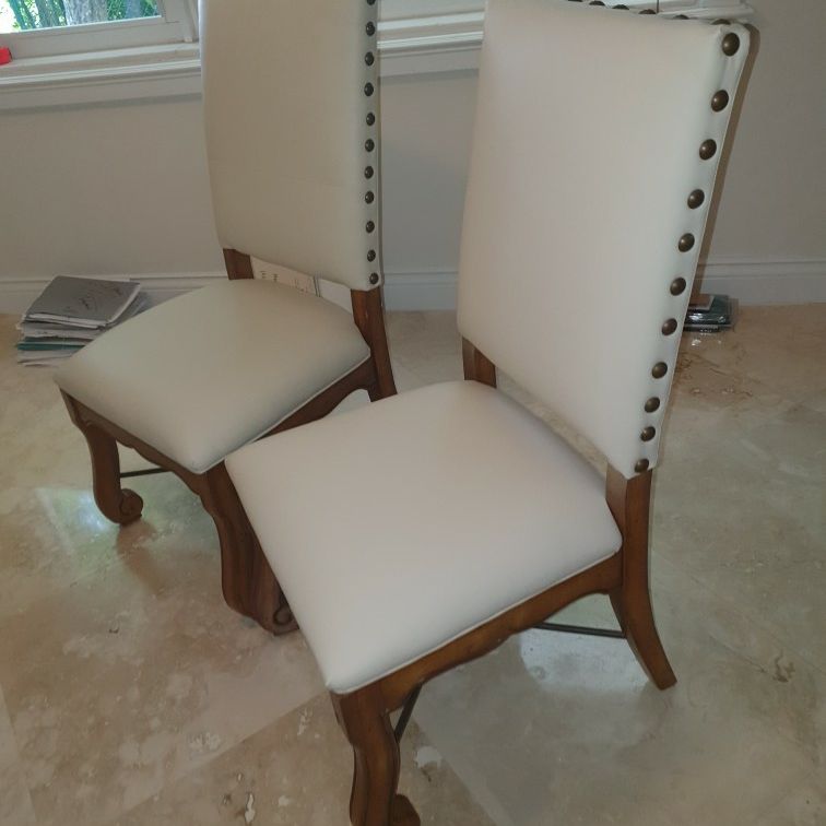Must see excellent condition. Cream leather JUST REPHOLSTERED heavy chairs, excellent quality. Eric Martinez (contact info removed)(contact info removed)