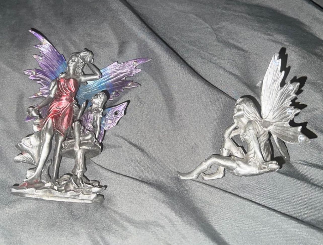 Vintage pewter fairy figurines. one figurine is missing one rhinestone but besides that are in perfect condition. Figurines like these range from anywhere from $16-$40 per figurines. It’s pick up in Stockton