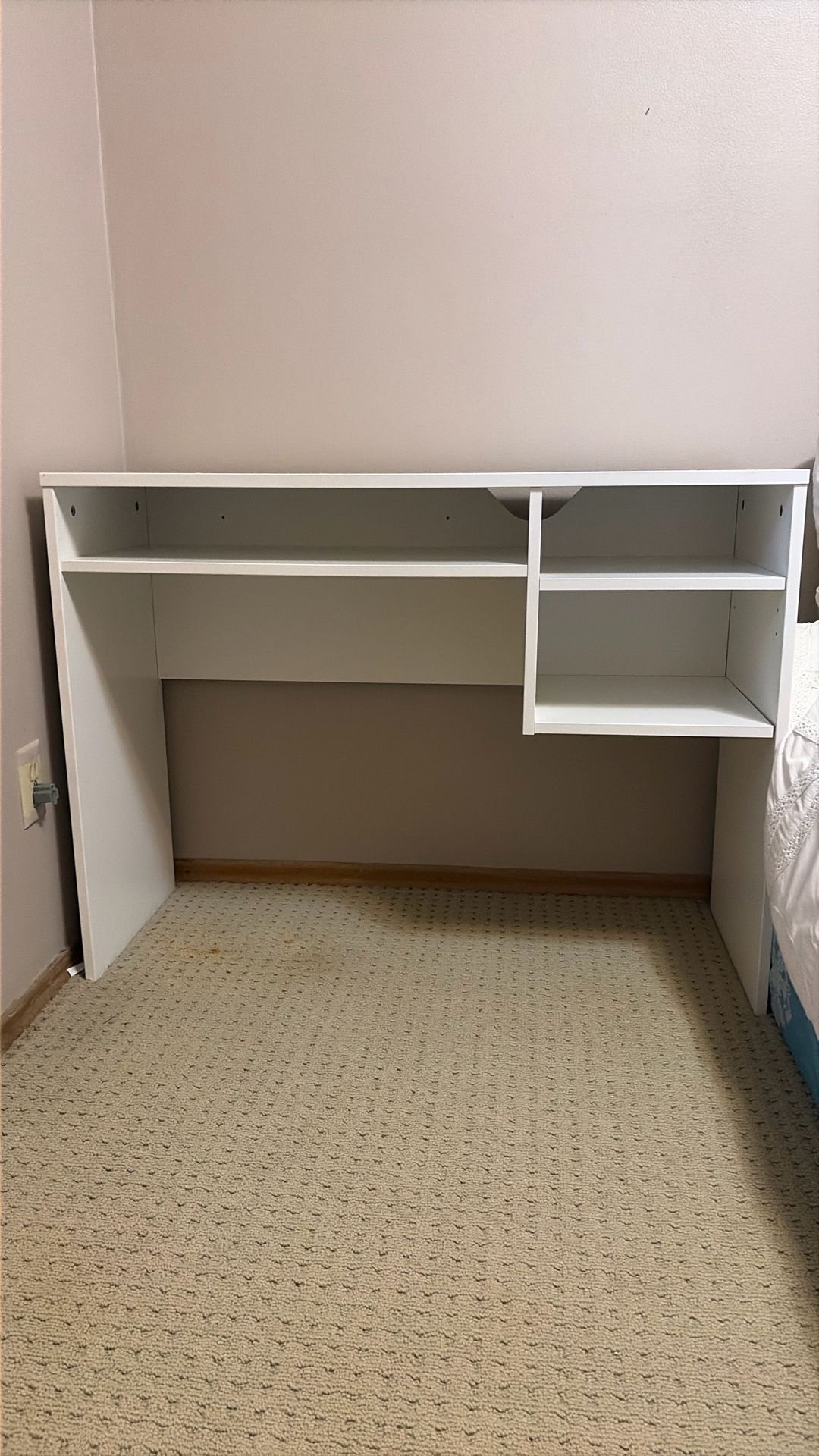 Small white desk measuring 30” high, 40” long , and 15” wide. In excellent shape! Perfect for a bedroom or dorm