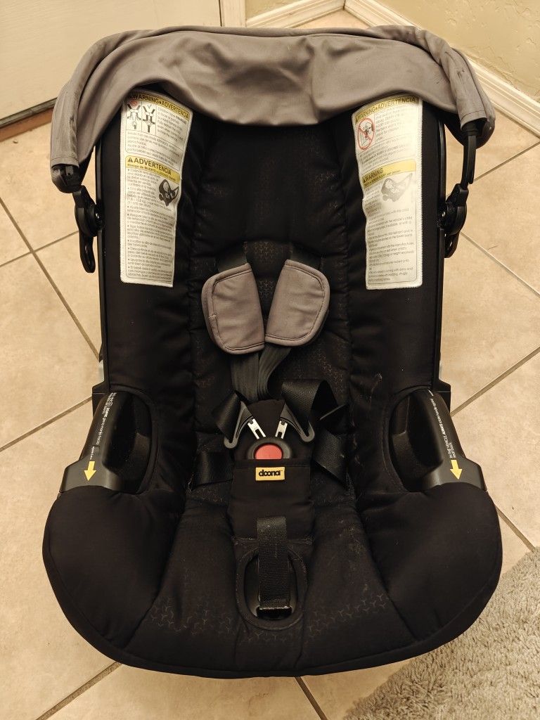Doona car seat and stroller in one. Color greyhound. Gently used. Originally $650, asking $350. Infant inserts included but not pictured. Max weight is 35 lbs. Fabric is easy to take off to clean.