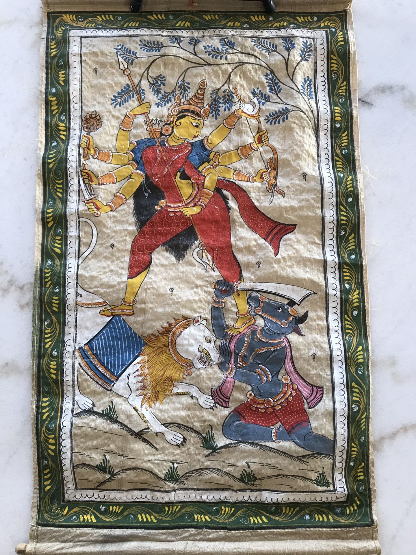 Traditional Indian Painting on 100% silk. Beautiful wall hanging. Great Christmas Gift!