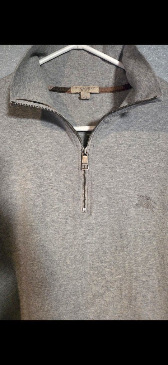 Burberry men's light grey cotton blend half-zip sweatshirt