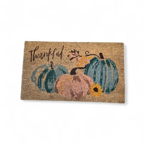 Fall Thanksgiving Pumpkin Coir Doormat Gently Used Condition Standard Size Rubber Backing Weight: 3 lbs wrapped and boxed