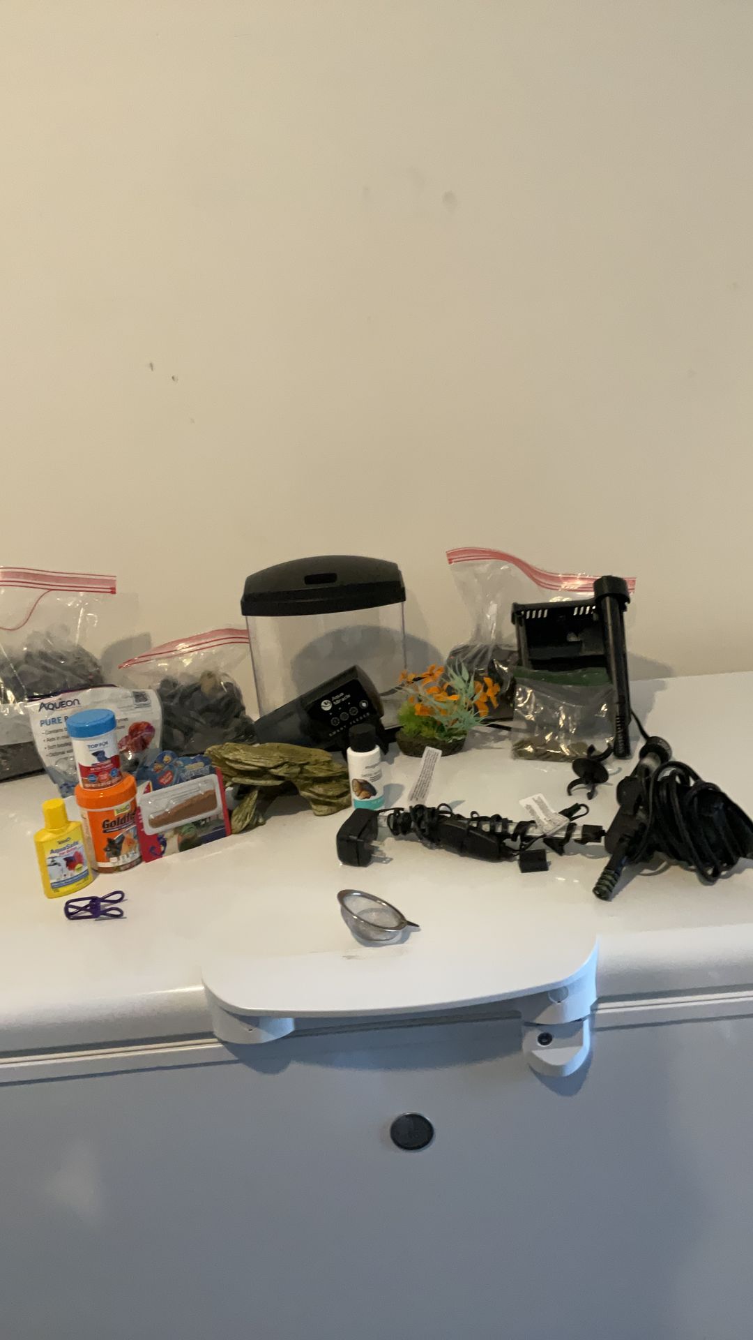 Includes: 15 lbs of rock (black lagoon) About 2lbs of river stones Aqueon PURE Betta beads 3 different types of food Betta water conditioner Imagitarium betta disease remedy 50 Watt water heater Aqua Miracle smart feeder Decor (Fake plant, hut) Algae pellets LED light 2 in 1(blacklight and bright light) Fish net And Two power filters (Please Message me for pricing!) SERIOUS BUYERS ONLY!