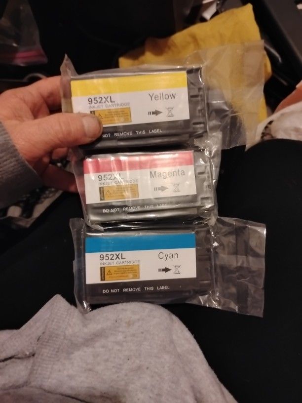 Ink cartridges for a HP925xl printer brand new cartridges there new sealed in plastic with out the box.