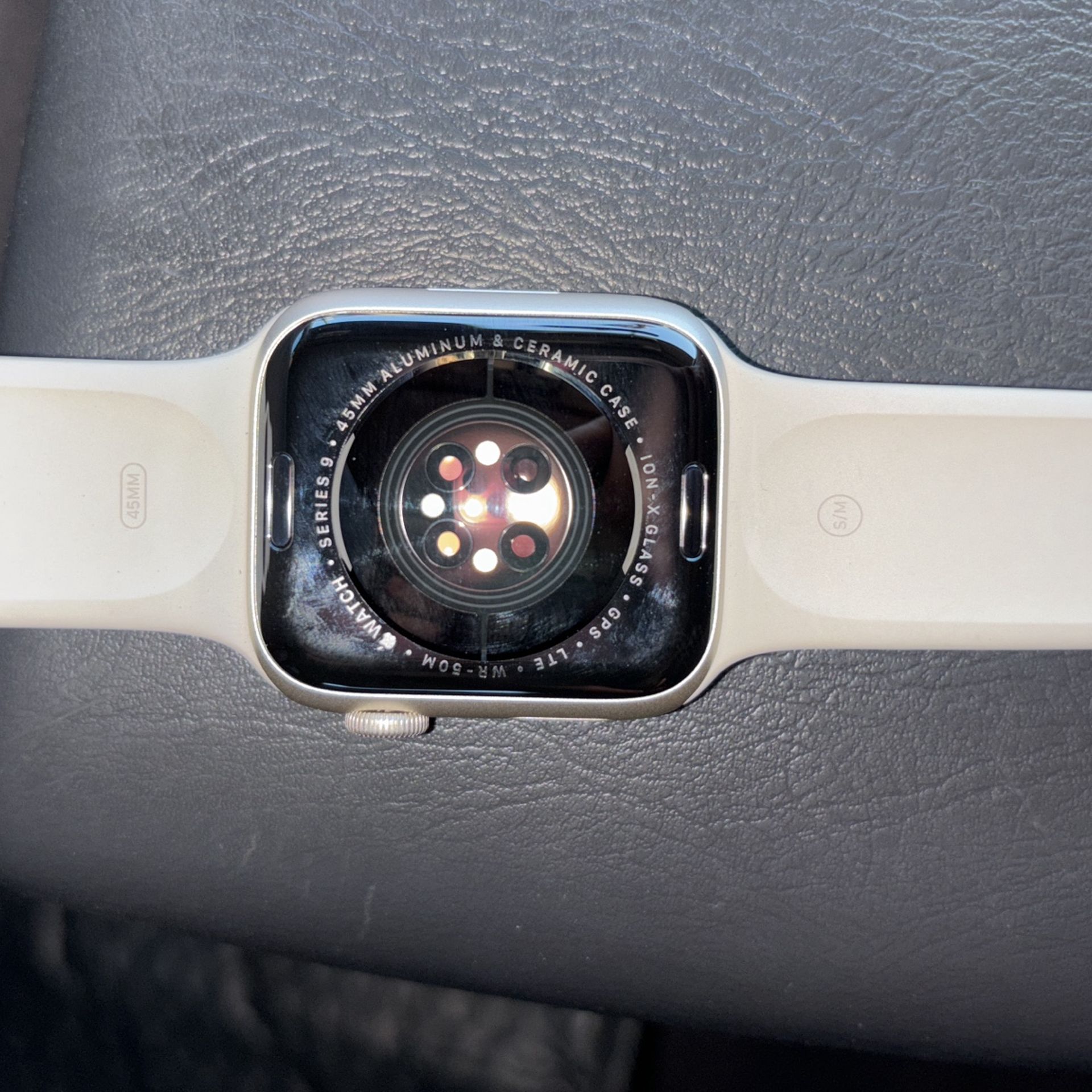 45mm Goodish color Firm on price, theres also a picture of apple website price comes with just the watch no box or charger also willing to trade