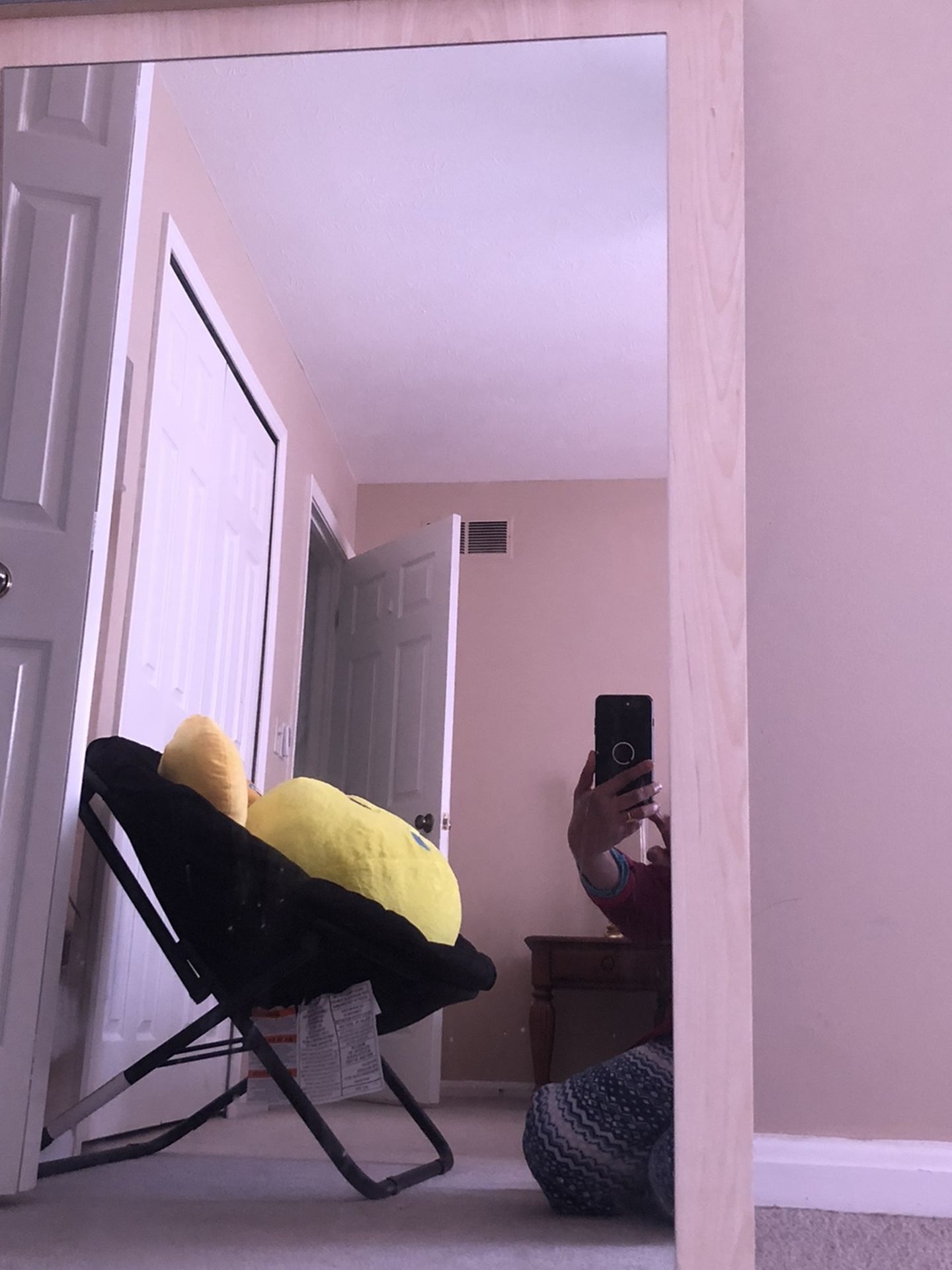24 in. W x 44 in. H Framed Rectangular Mirror in Light Blonde. It weighs a lot so it is very suitable for furniture like a dresser. Frame is constructed of eco-friendly engineered wood.
