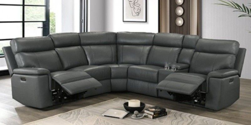 Brand New Grey Super Plush Leather Power Reclining Sectional Sofa