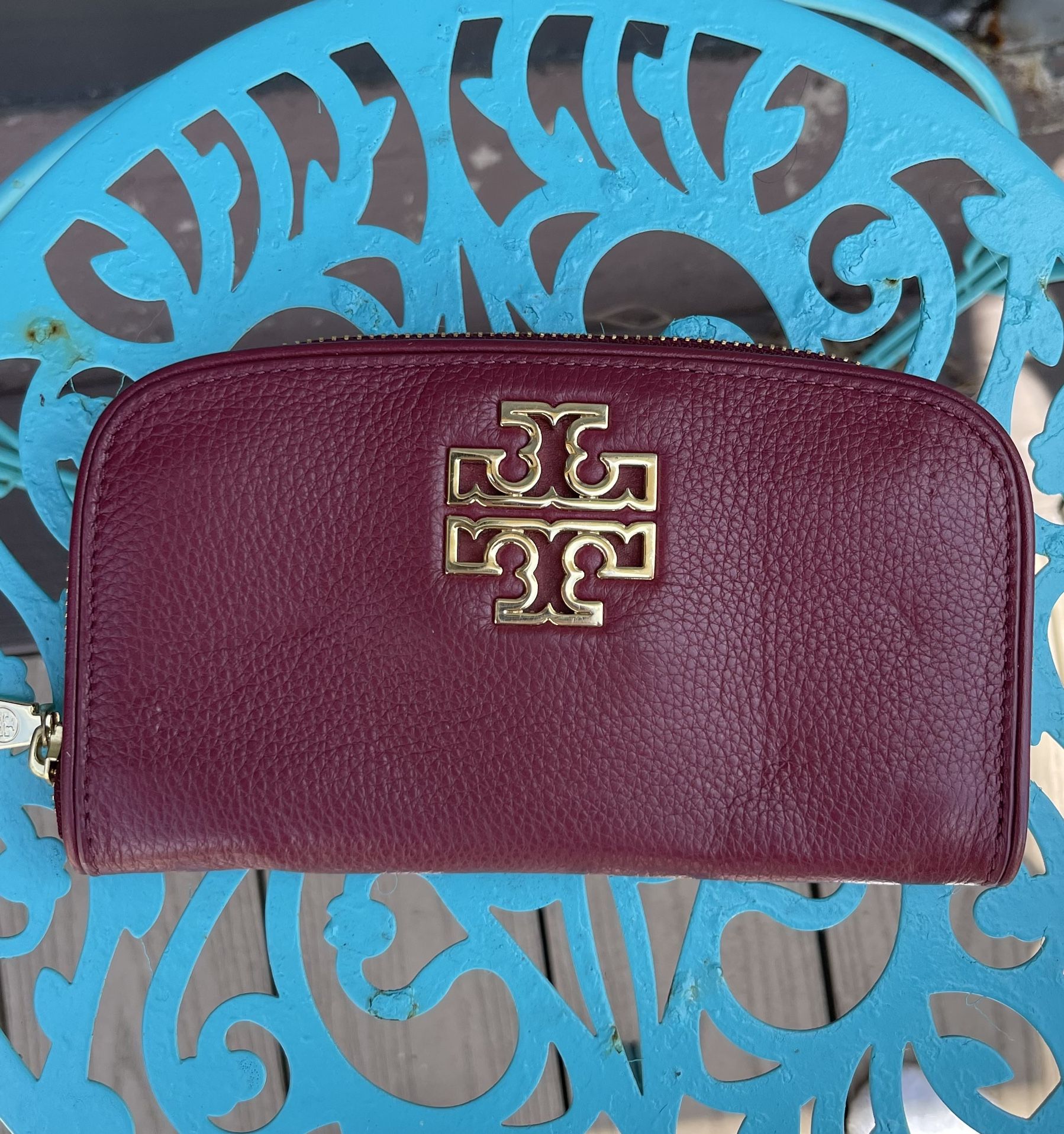 Beautiful Tory Burch burgundy wallet Leather and hardware in great condition