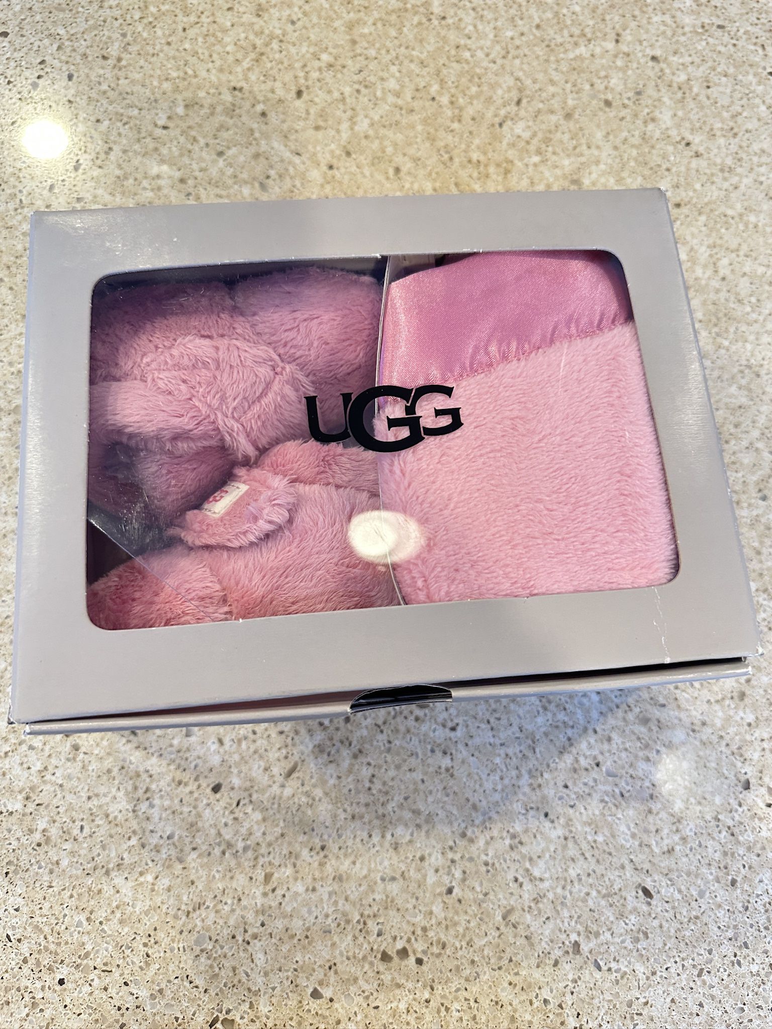 UGG Baby Gift Bixbee and Love Bubblegum Pink Booties and Lovey Infant 0-6 Months Brand New. Never used. Clean and comes from smoke free home. Meet in Lynnwood at Whole Foods