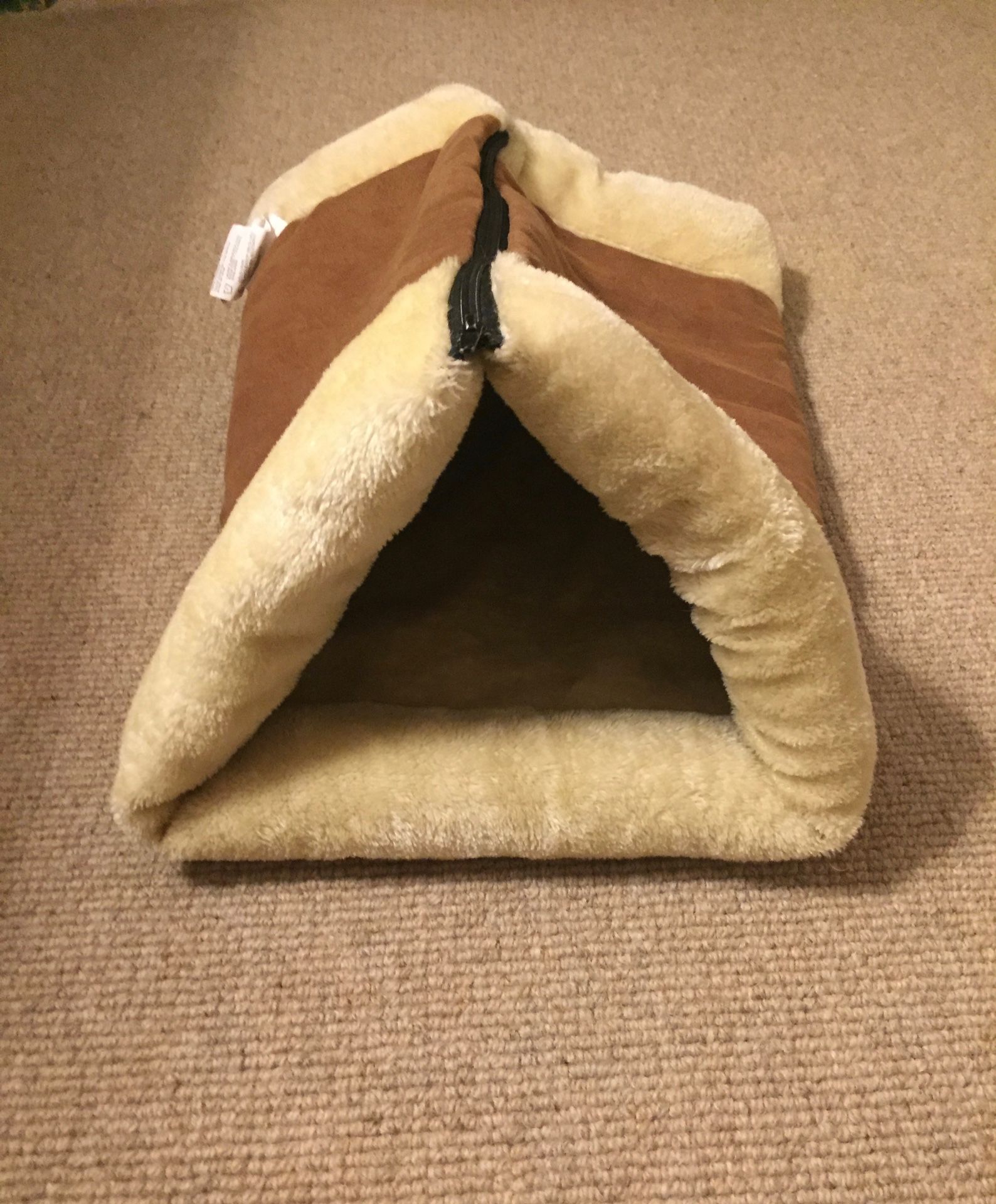 This cat bed is in good condition. There is some mild staining on the bottom.