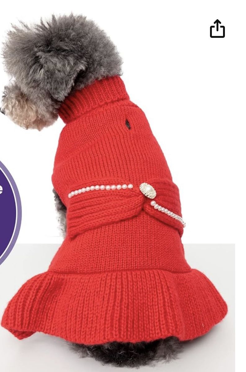 New with tag 2 X cyeollo Dog Sweater Dress Turtleneck Doggie Sweaters Pullover Knitted with Bowtie Warm Winter New Year Dog Clothes for medium to large Dogs