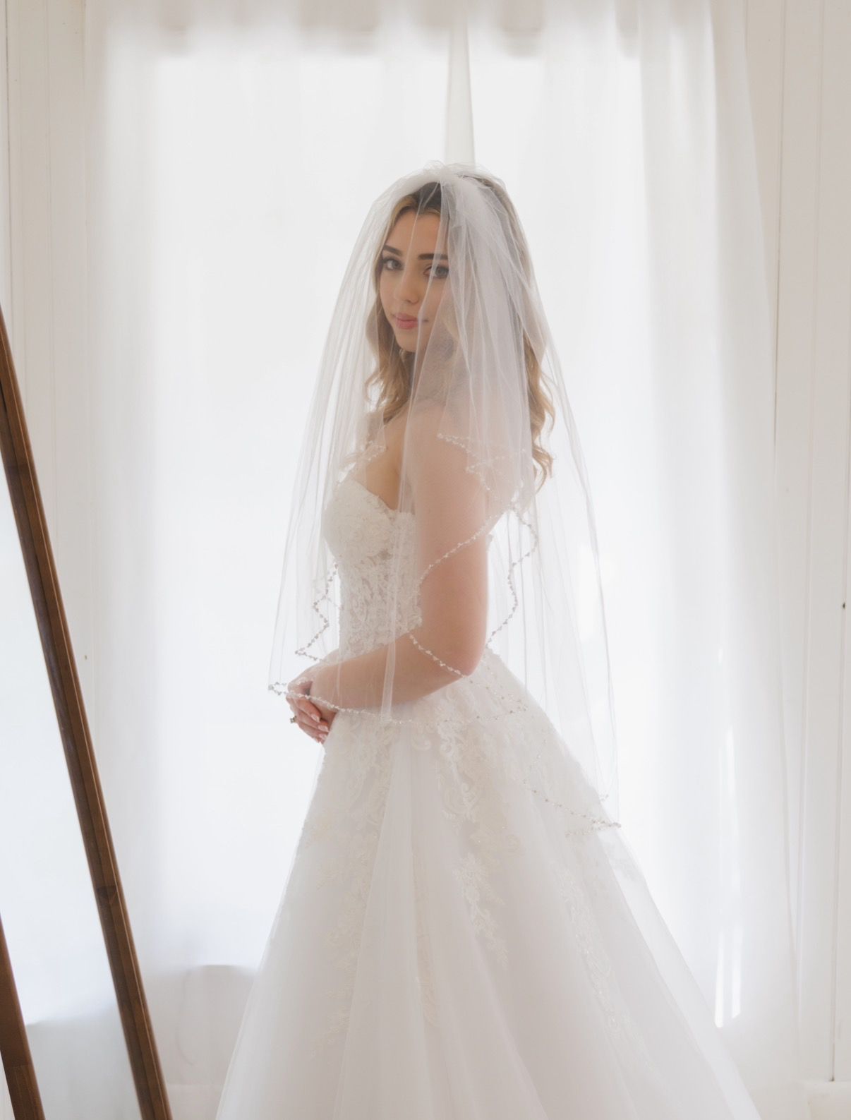 A-line strapless wedding dress (size 2, altered) + veil, underskirt & bustle I’m selling my wedding dress! It’s a really pretty A-line style with a strapless top and mid-back. The bodice is fitted and then flows out into a fuller skirt, so it’s super flattering and comfortable. The dress has beaded embellishments with beaded flowers all throughout, which give it a really nice sparkle without being too much. It looks beautiful in the light and in photos. What’s included: - Matching veil - Underskirt (petticoat/crinoline) that goes underneath to make the dress more full/poofy - Bustle (buttons in the back) so you can hook up the train for walking and dancing Size & alterations: - Originally a size 2 - Altered to be a little smaller in the waist - Includes extra padding in the bust, so you don’t need a bra Condition: The dress is still really beautiful and white overall. It does need some cleaning: - The underside of the dress - Small areas on the top and bottom The fabric itself is in great condition — no rips, holes, or tears at all, just a little dirty in some spots from being worn once. Message me if you want more details or pictures 🤍