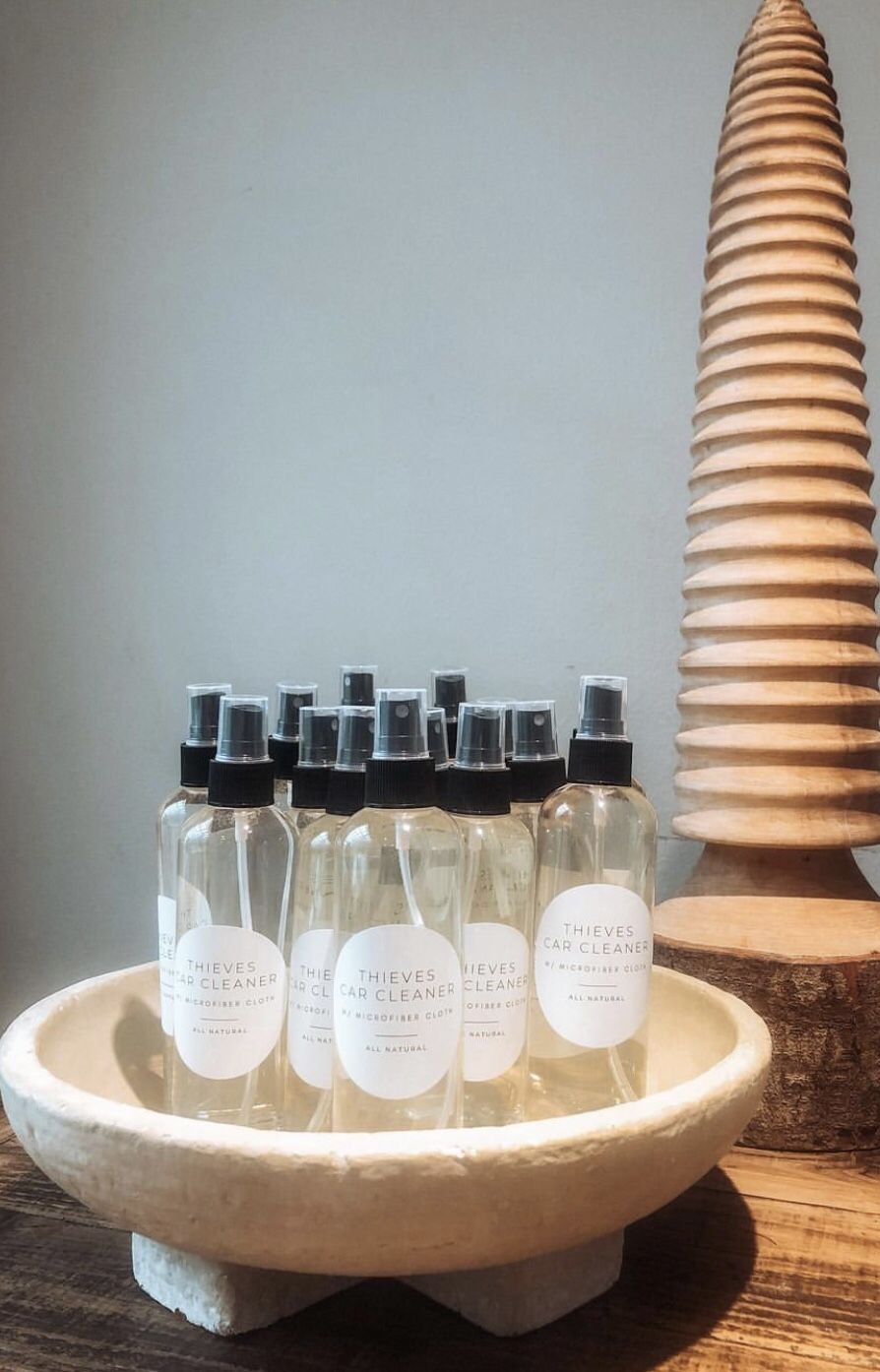 Thieves young living car cleaner comes with microfiber cloth. Smells so good! Works amazing. Doesn’t leave everything greasy. Actually cleans it. All natural cleaner. I keep in my car. Great for gifts as well. Come get yours at rustyglamour in battleground Washington. 403 e Main Street. Open Monday thru Saturday 10am-6pm. $12 each