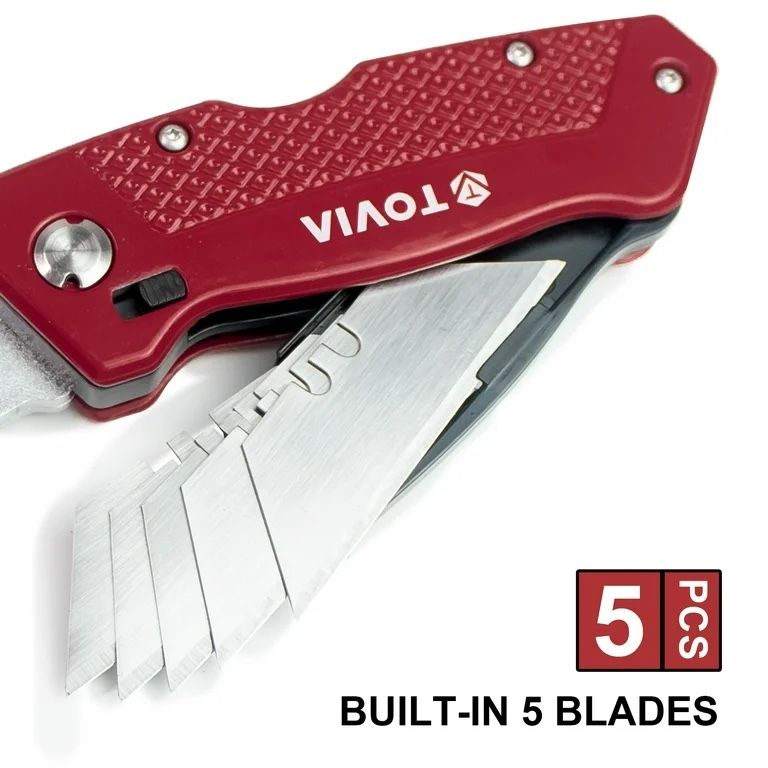 TOVIA Folding Utility Knife Quick Change Box Cutter, 3-Position Retractable Blades, Blade Storage Design with Extra 3 Blades, Box Knife for Cartons, Cardboard and Boxes