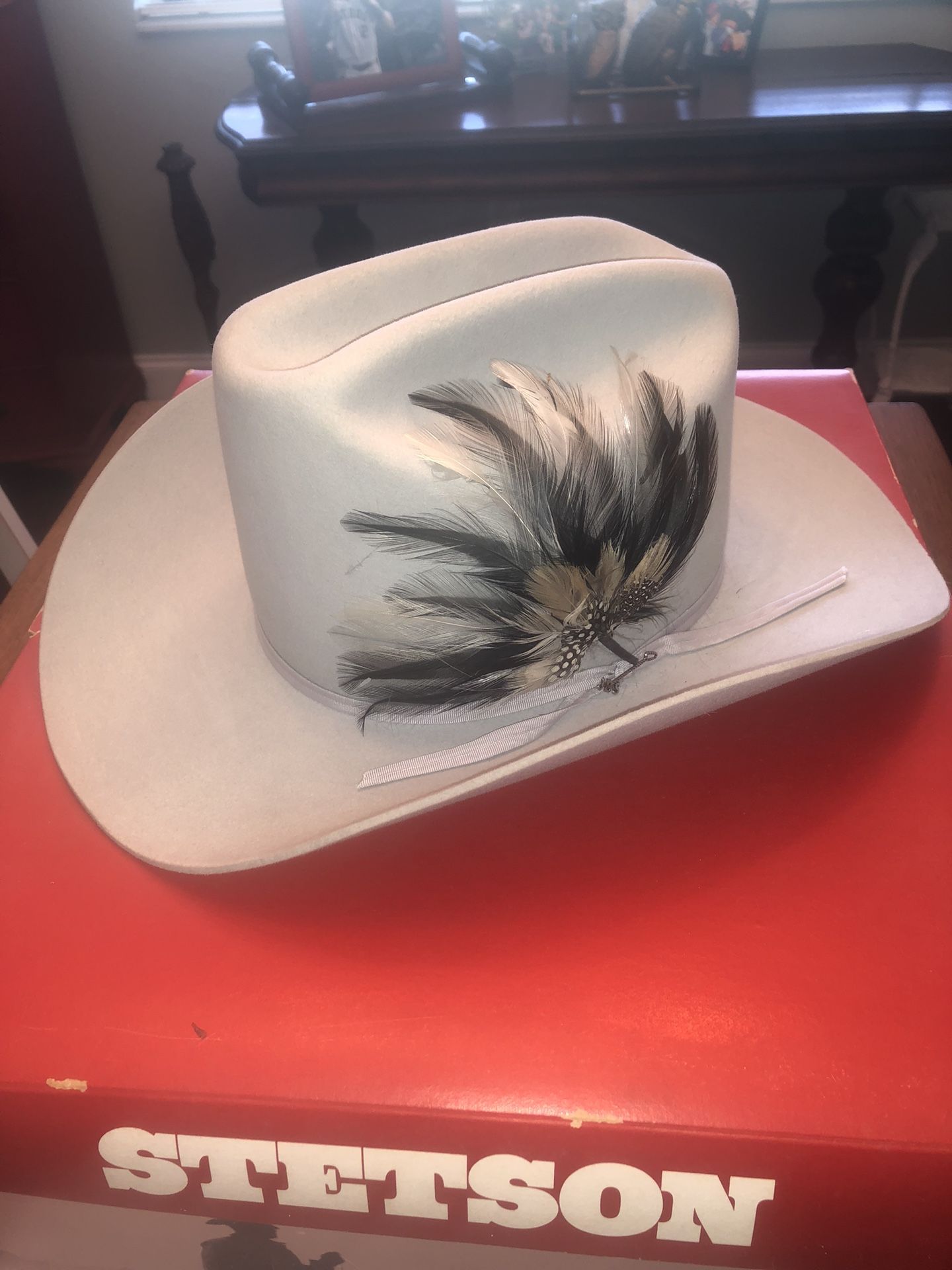 Stunning Vintage Men’s Stetson Roper 6X Fur Felt Cowboy Hat. In Excellent Condition. Comes With 2 Different Feathers. In Original Box. 7 1/8 FCFS