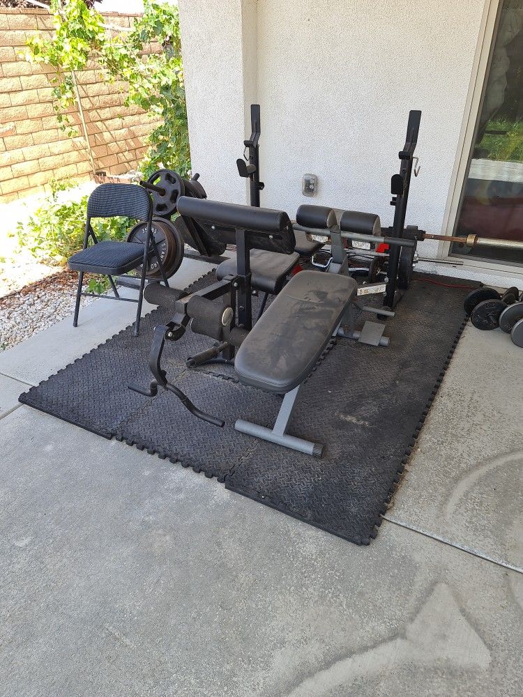 Workouts Oylimbic bar,weights, dumbbells