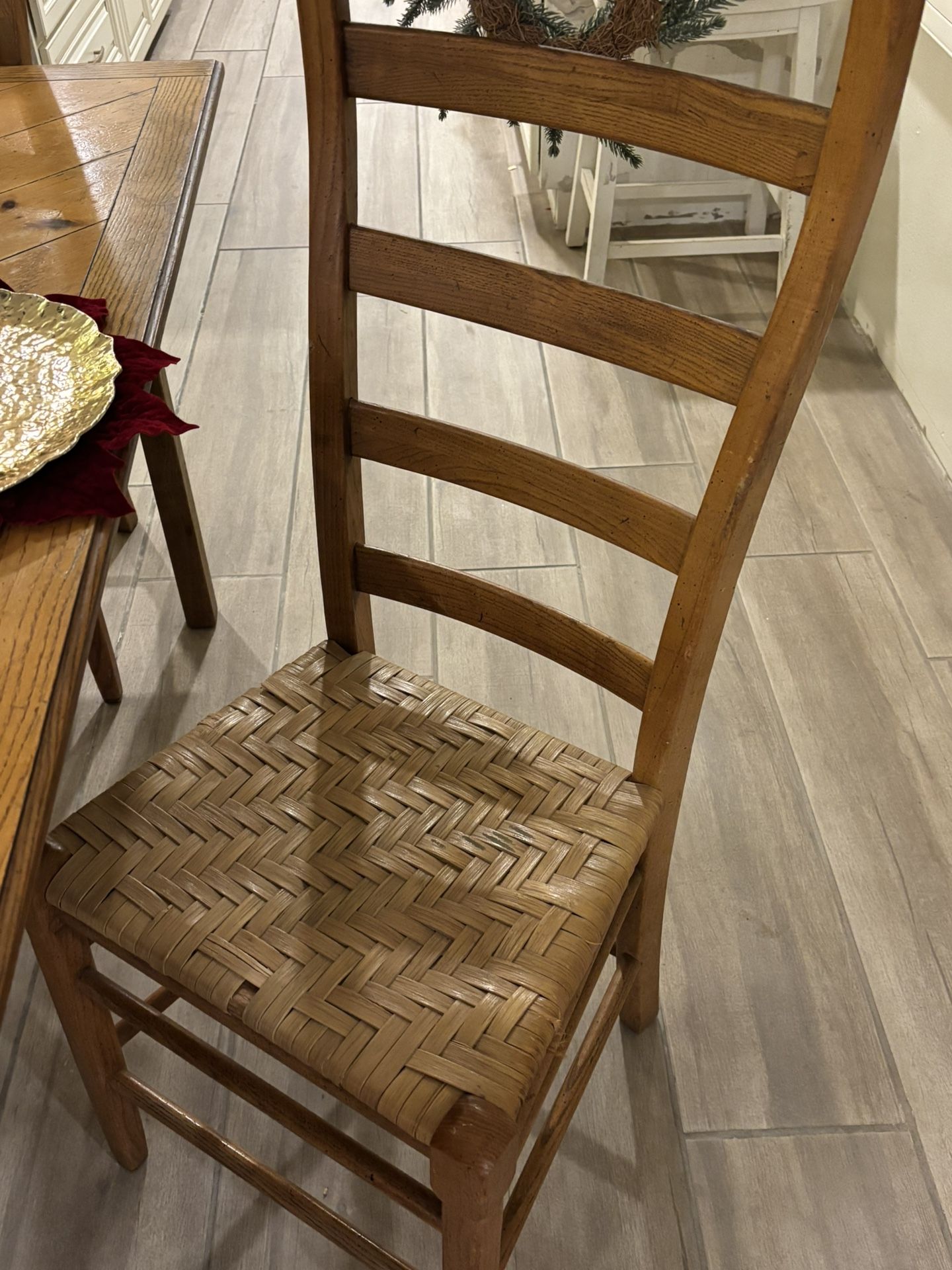 Have this solid wood 5 piece dining table Ones chair has arm rest Available Located in Jurupa valley Delivery available $$$ Measurements 64” L 40”W 30”H
