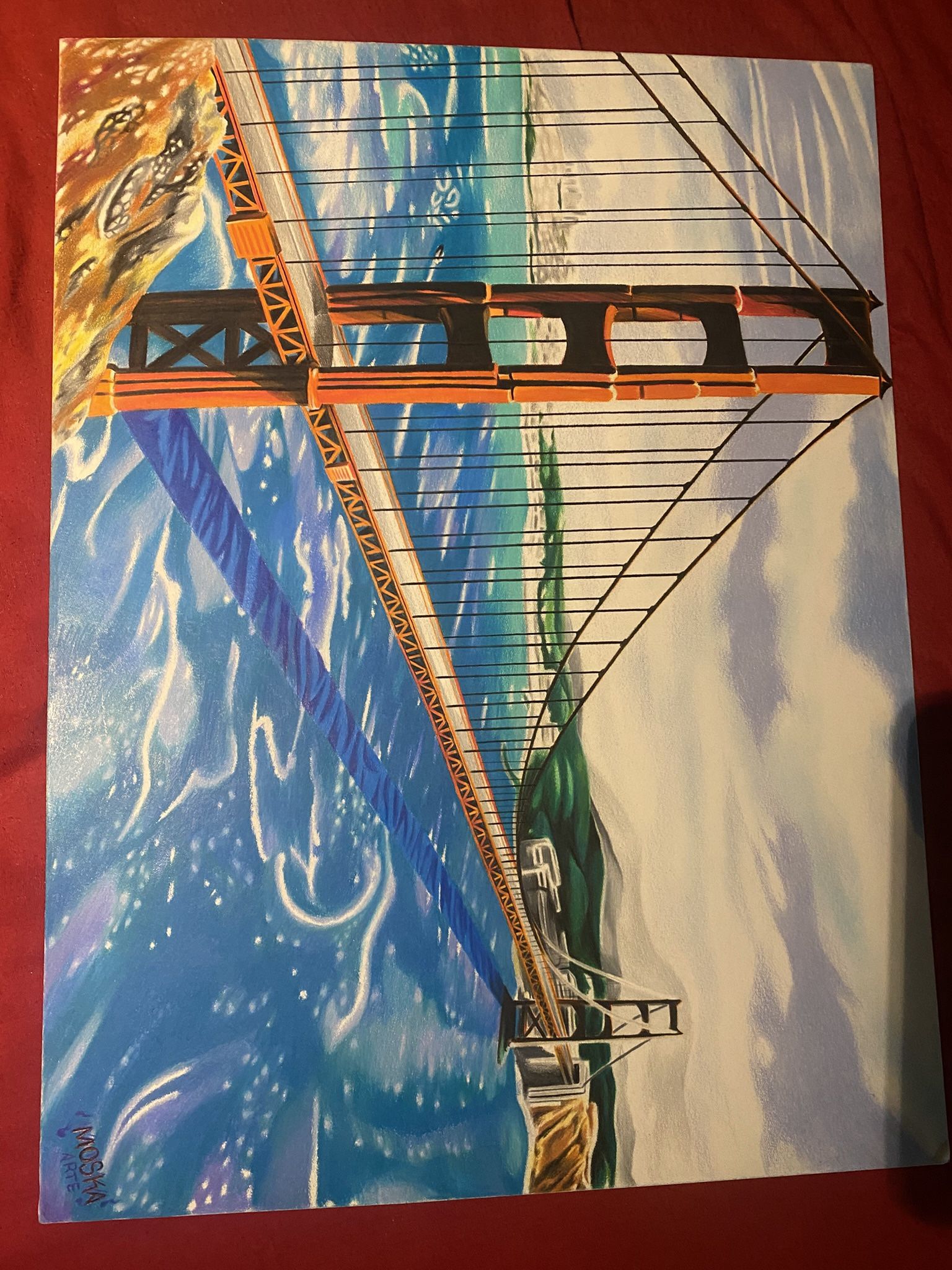 20x15 Golden Gate Bridge drawing very detailed with color