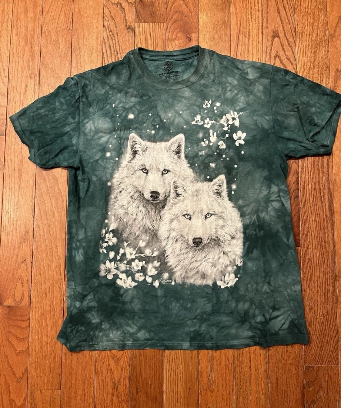 The Mountain White Wolf Husky Dog Tie Dye T-Shirt Flowers Adult Mens Large Y2K