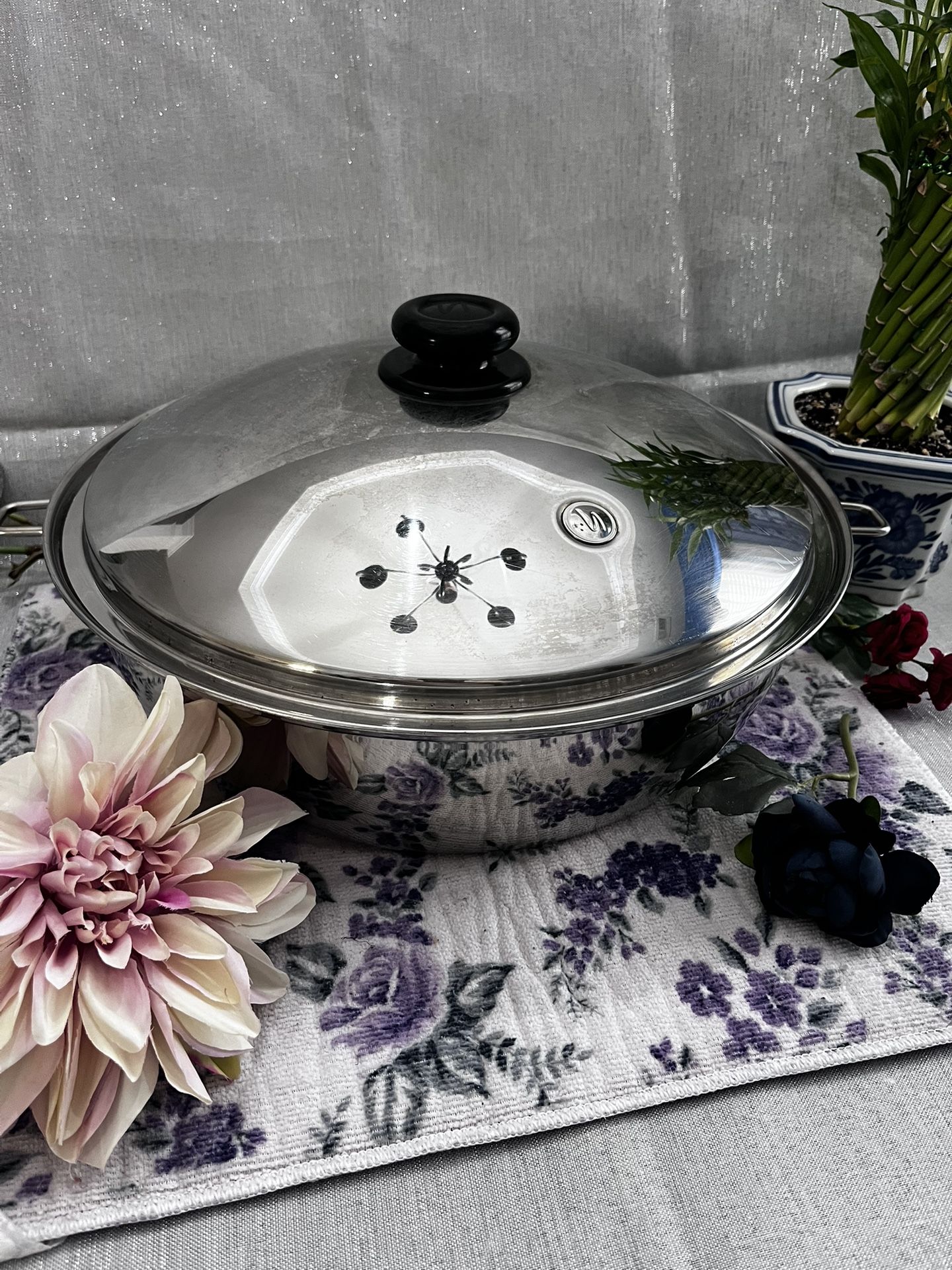 Large stainless steel stock pot with lid in good condition. Durable, heavy-duty construction, perfect for soups, stews, pasta, boiling, and everyday cooking. Smooth interior, easy to clean, solid handles for safe lifting. Includes matching lid with knob. No dents, normal light signs of use only. Ready to use. Approx. size: about 10–11 inches diameter, around 6–7 inches tall. Great for home kitchen, meal prep, and family cooking. stainless steel pot, stock pot with lid, cooking pot, soup pot, large pot, kitchen cookware, steel pot, pasta pot, stew pot, boiling pot, heavy duty pot, cooking pot with lid, stainless cookware, kitchen pot, large cooking pot
