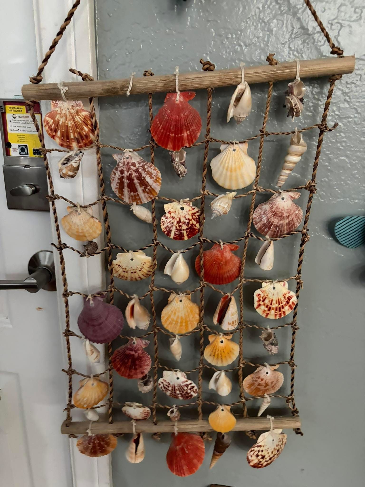 Real shells on wall hanging. And wood sign. Bought in Hawaii. No damage. They have been hanging in a kids room since purchased untouched. Price is for both together