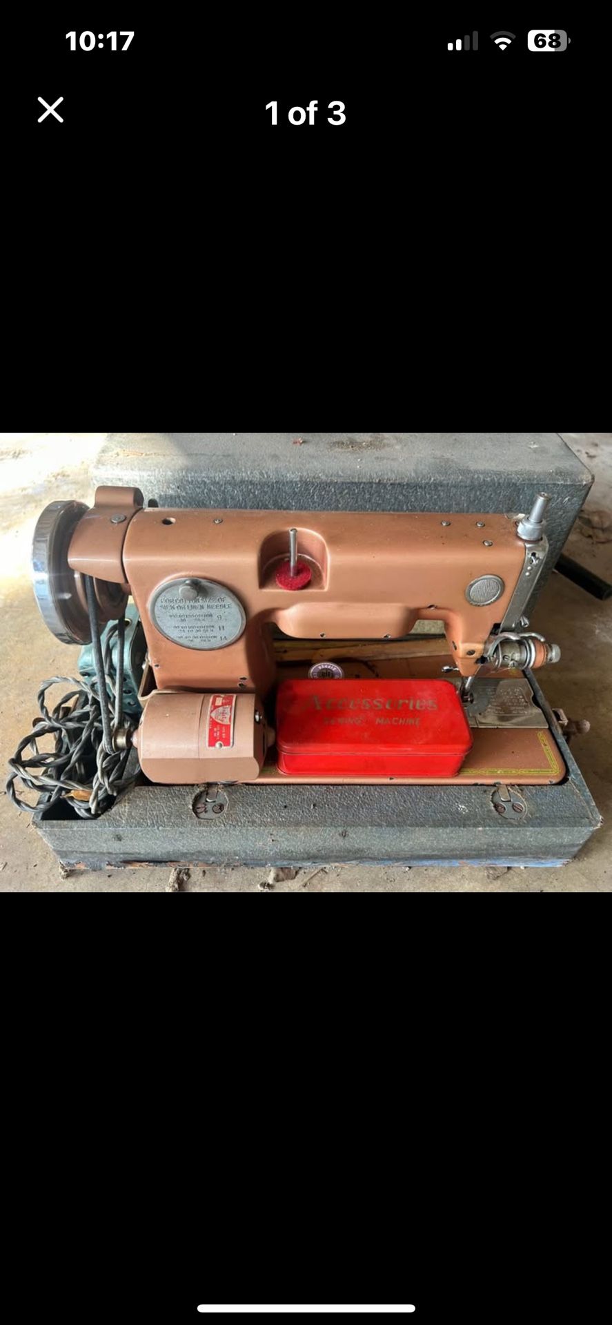 Pink Vintage "De Luxe Precision Built" sewing machine. Made in Japan after World War II, and were clones of the Singer 15 mode.
