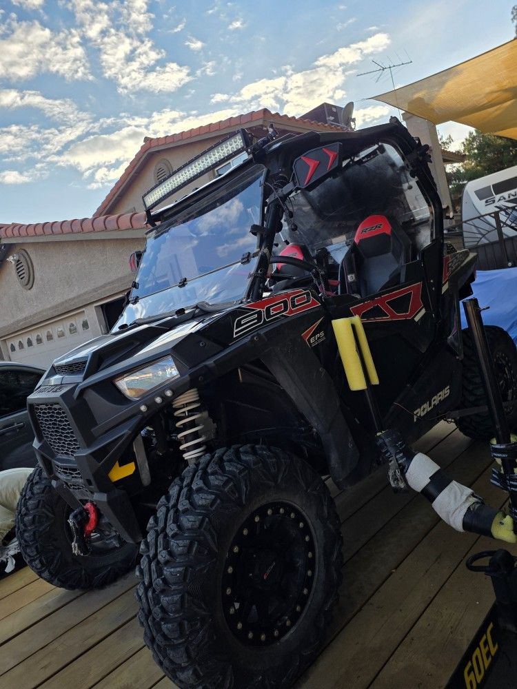 Lots of upgrades. Extra 4 new air filters, new drive belts, New in box fuel pump. The fuel pump in unit now only has 80 miles on it. Lift kit and larger rims and tires dealer installed. Light brake turn signal and horn kit installed. ( Street legal ) heater with 4 rotating vents imstalled. AZ. UT. Trailer has NEW heavy duty tires, less then 200 miles (discount tire ) installed. Has 1 full spare tire installed. Locking tool box installed 16" depth,42" wide, 18" tall. All maintenance done on rzr and trailer wheel hub packings Rzr has been covered with a cover from day of purchase.