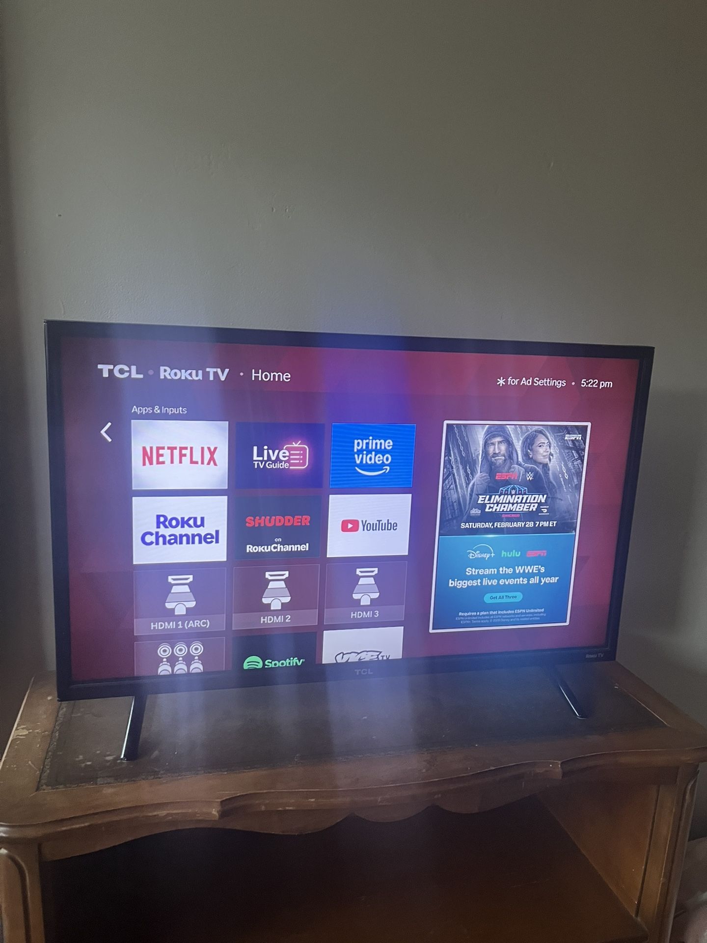 Great medium sized Roku TV with remote. You can watch from any apps (Netflix, HBO, Prime, etc.) or live television. Retails for $120.