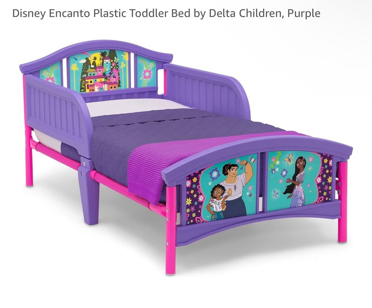 Encanto-themed toddler bed in excellent condition. My daughter barely used it, and it was purchased in November. Very clean and well cared for in a smoke-free home. ✨ Fits a standard toddler mattress ✨ Fun Encanto design — perfect for any Encanto fan ✨ Low-to-the-ground, great for toddlers transitioning from a crib ✅ Mattress INCLUDED — purchased separately for $70 Everything is in great condition and ready to use. Pick-up preferred. Message me if you have any questions!