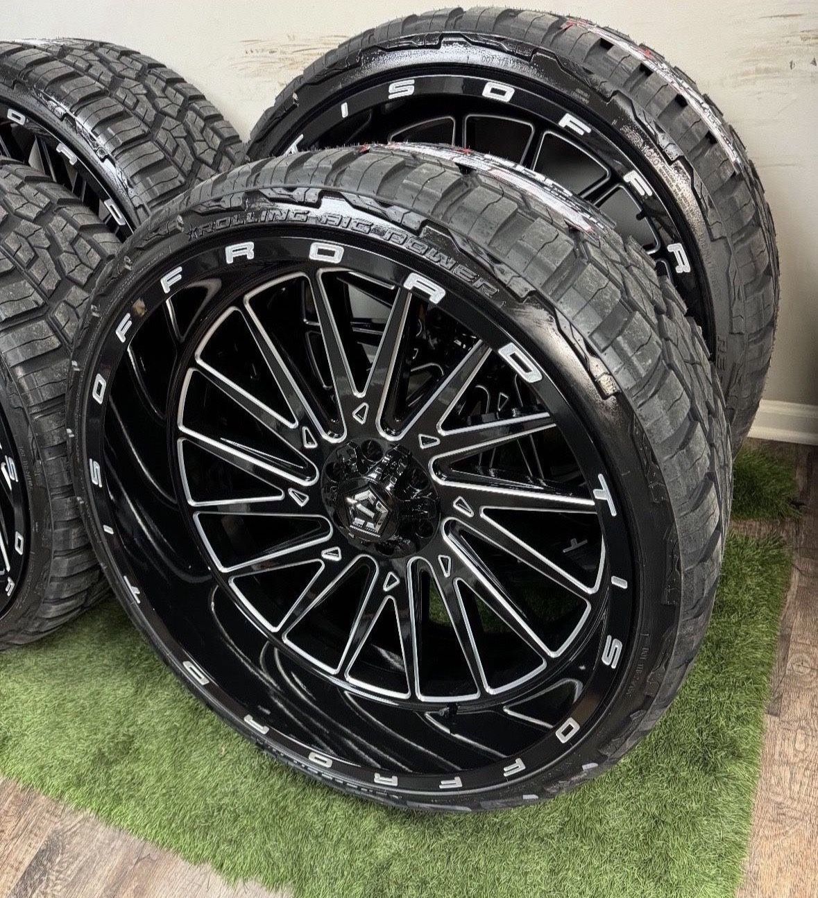 New 26x12 tis wheels wrapped in 305/30r26 tires SAME AS A 33 🟢mounted balanced tpms sensors lugnuts and installation included. 🟢$3450They fit gm 6x5.5 or 6x135 🔴WE OFFER FINANCE Located in gilberts il chevrolet silverado tahoe avalanche suburban express van gmc yukon denali sierra cadillac escalade esv ext nissan titan armada 2 door tahoe infinity ram ford f150 lariat platinum