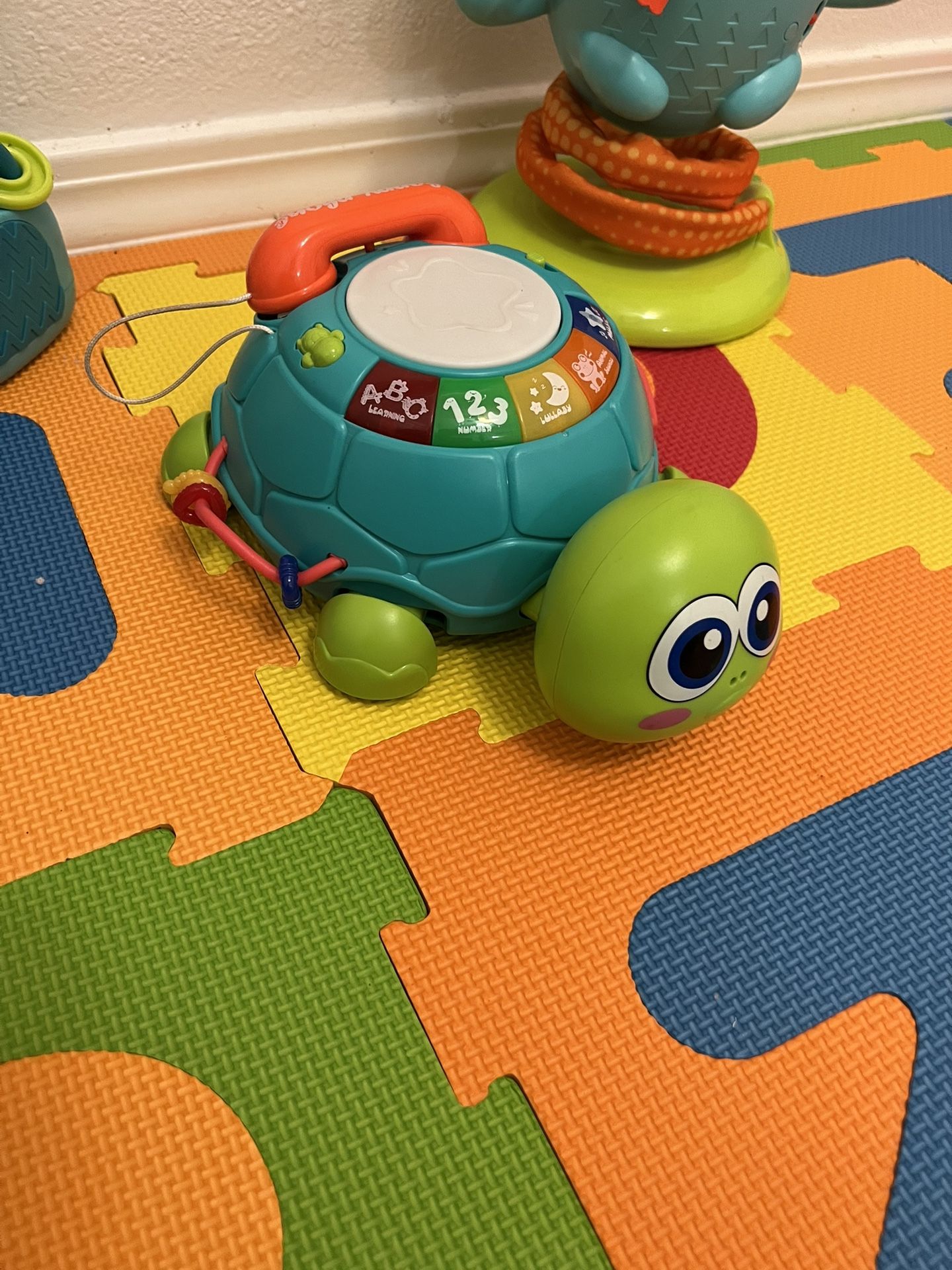 Super fun baby toys and very entertaining turtle walks slow so if babies is learning how to crawl that would be a great toy to start with Five dollars each If ad is up, it’s available please only message once serious and ready. Thank you.