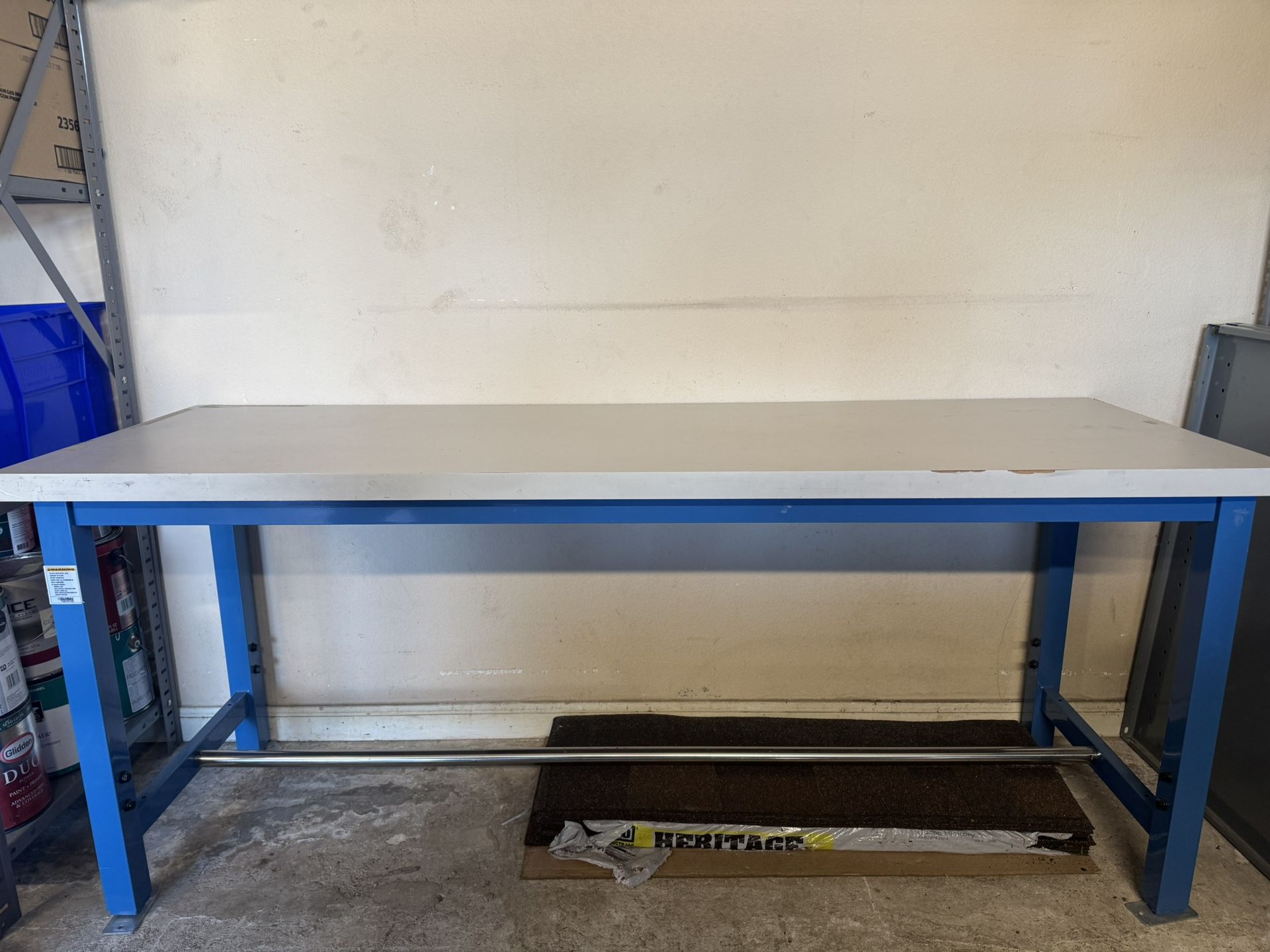 Global Industrial 72 x 24 laminate top work bench 5000 lb capacity Height adjustable 31 5/8” to 43 5/8”